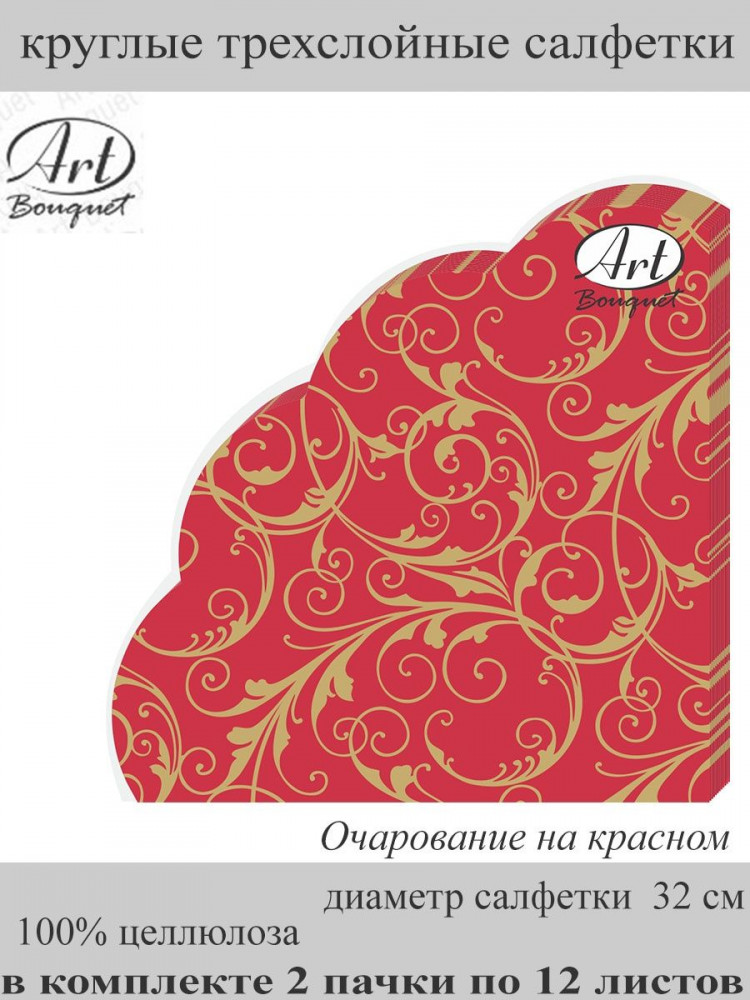 Салфетки «Art Bouquet» — это яркие трехслойные бумажные салфетки круглой формы. Такие салфетки не только сослужат хорошую службу за трапезой, но и дополнят общую атмосферу праздника. Качественные трехслойные бумажные салфетки изготовлены из качественной целлюлозы. На салфетках нанесен яркий рисунок. Салфетки с рисунком станут отличным дополнением вашего праздничного стола.