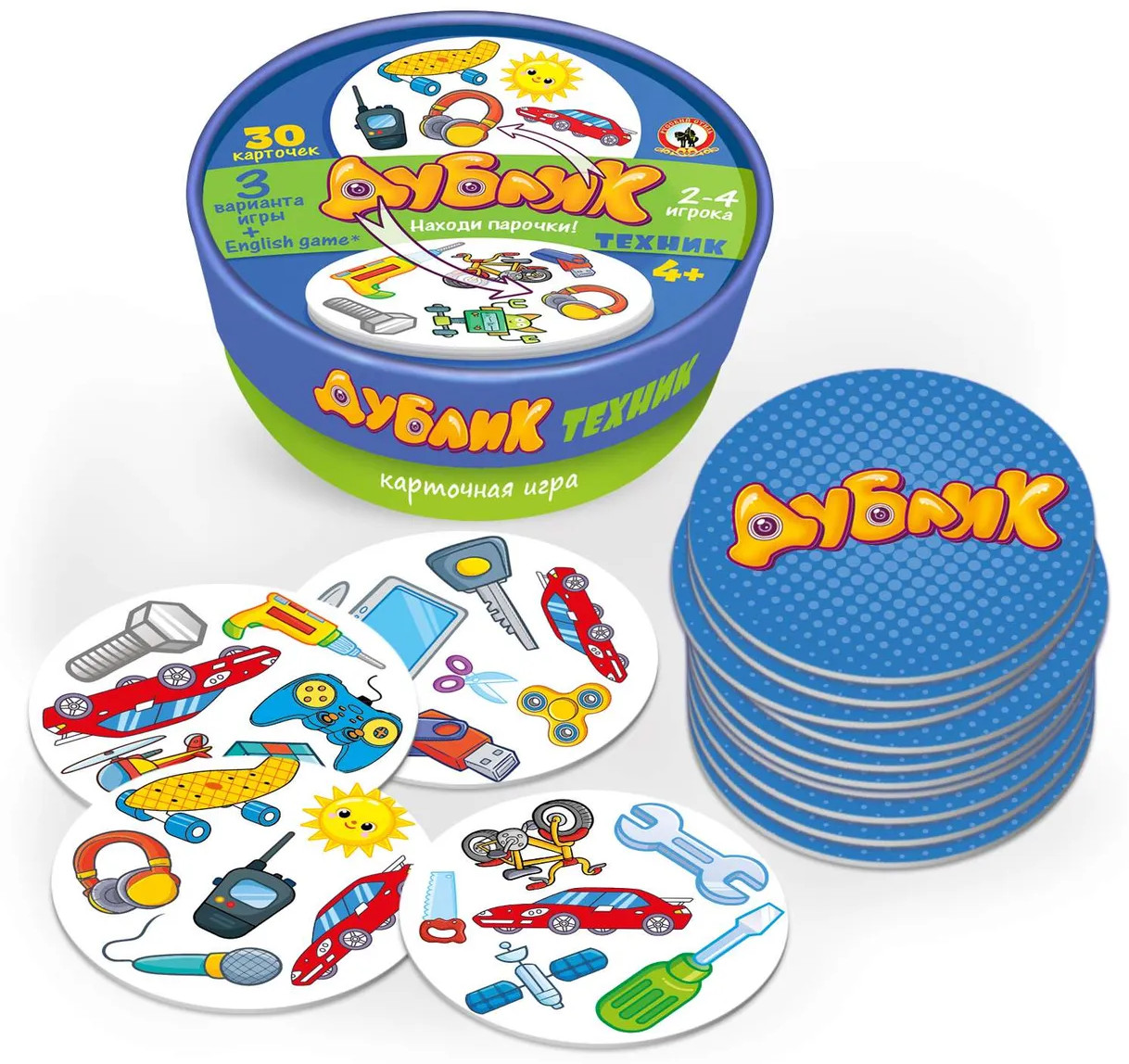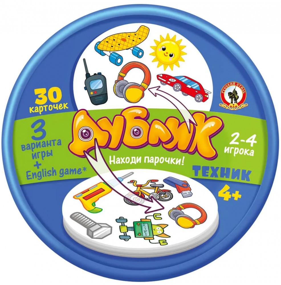 Русский стиль Игра настольная «Дублик. Техник»В данный момент этот товар отсутствует в продаже. Возможно, у нас найдется аналогичный или похожий товар здесь. «Дублик» – это игра, которая сможет развеселить и увлечь каждого! В комплекте карточки с разным набором картинок. На карточках изображены разные механические и электронные предметы, связанные с техникой: наушники, виды транспорт, спортивный инвентарь и много других интересных изображений, интересных и мальчикам, и девочкам. Игрокам необходимо найти совпадающие изображения быстрее всех, кто больше всего наберёт карточек – выигрывает. В правилах описаны несколько вариантов игры, в том числе вариант игры на английском языке! Названия картинок в правилах подписаны на русском и на английском языке. Играя, дети смогут пополнить свой словарный запас, выучив новые слова на английском языке. Память, скорость и внимание будут главными помощниками в этой игре. |