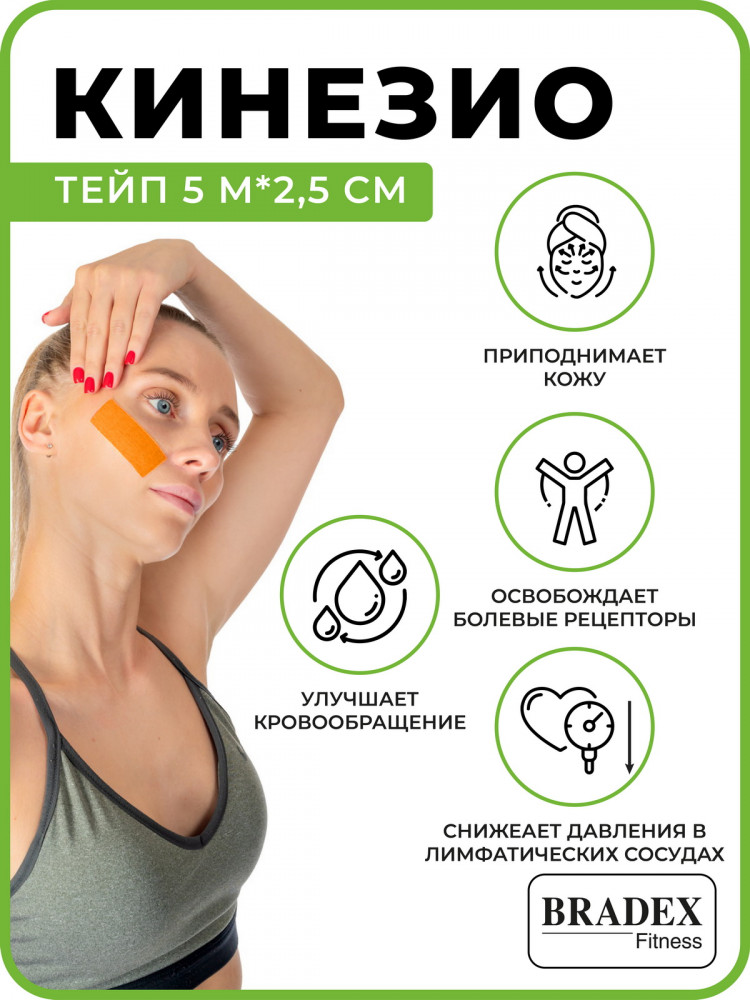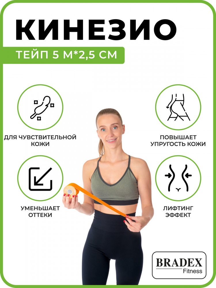 Bradex Кинезио тейп-20% +45 держится долго клеится хорошо качество для детей полезный
