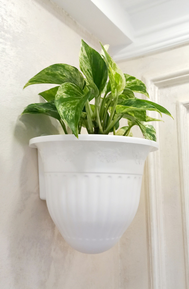 замечательное объёмное, красивое, белоснежное кашпо. заказала специально для эпипремнума. очень удобно вставлять горшок с растением вовнутрь.