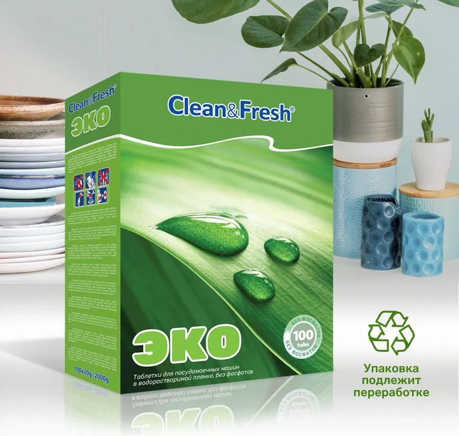 Clean&Fresh Таблетки для посудомоечной машины «Эко. Всё в 1»
