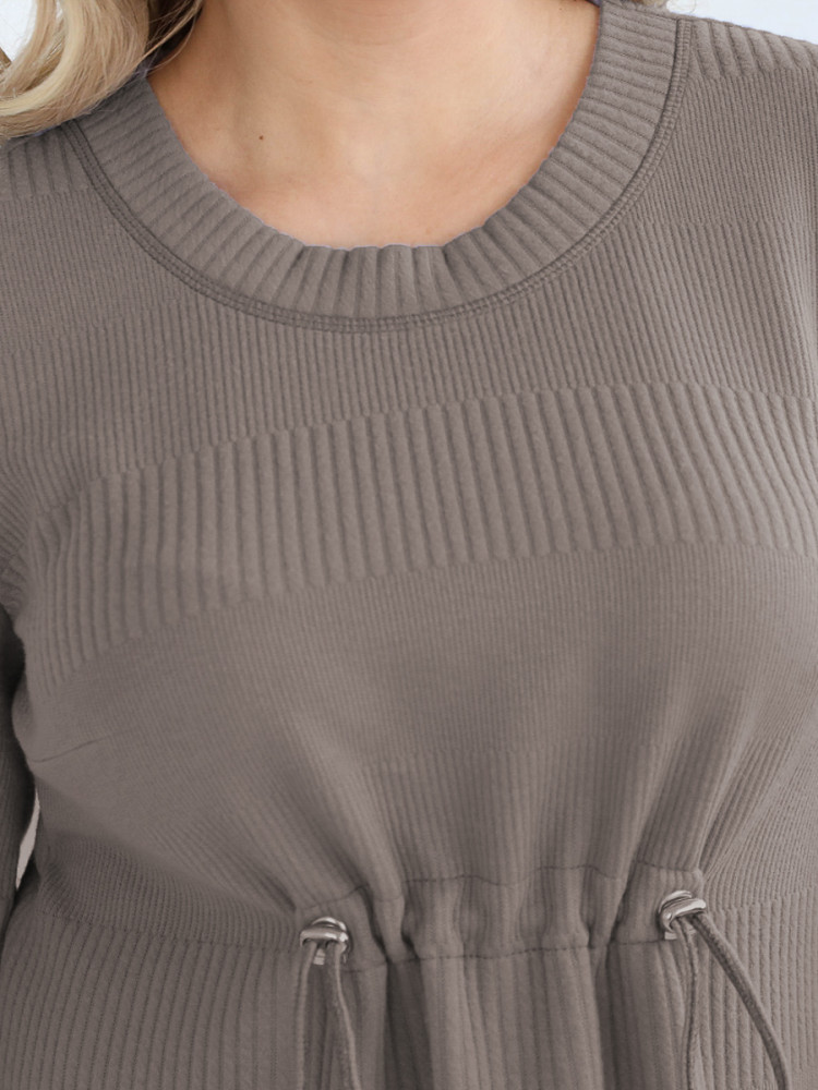 Мягкое, тёплое, очень красивого цвета платье. Для женщин 165-170 см. Для моих 160 - до середины икры, делает фигуру более приземистой.