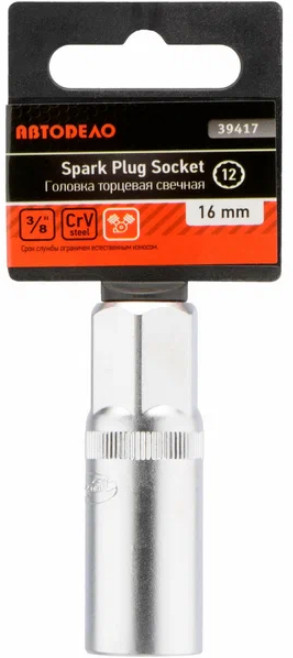 Головка торцевая свечная — основная разновидность рабочих насадок сборного слесарно-монтажного инструмента. Головка изготовлена методом горячей штамповки из хром-ванадиевой стали. Имеет 6-гранный рабочий профиль. Защищена от коррозии хромированием с эффектом матовой поверхности. Используется при обработке крепежа на высоких шпильках, длинных и углубленных деталях.