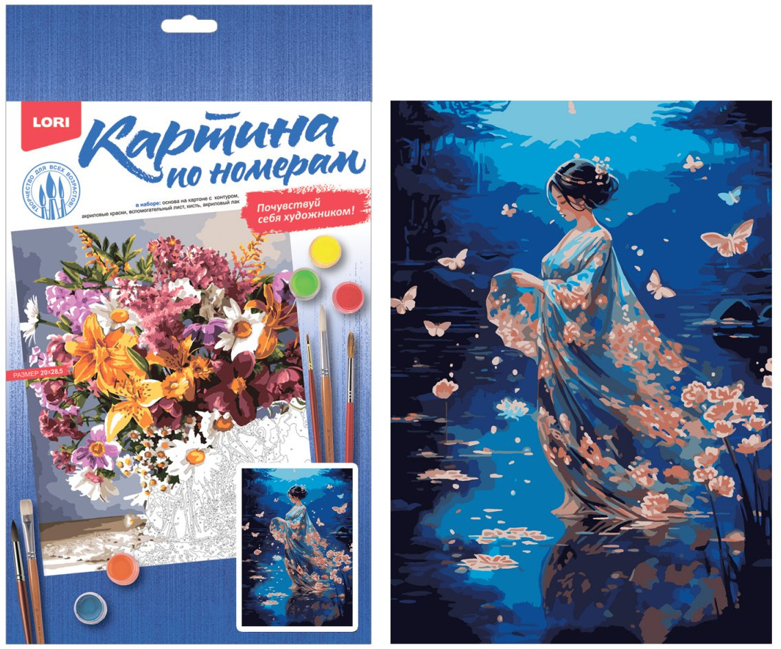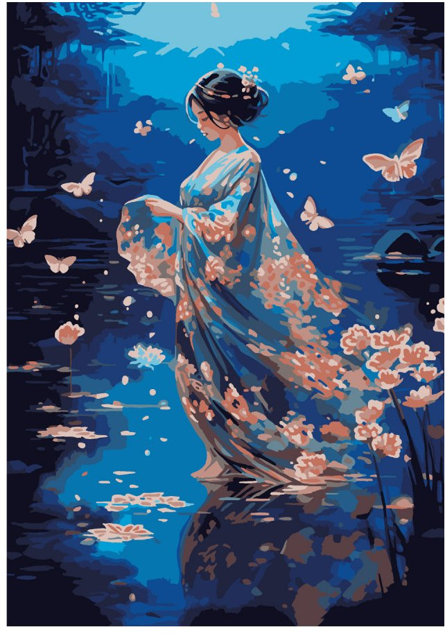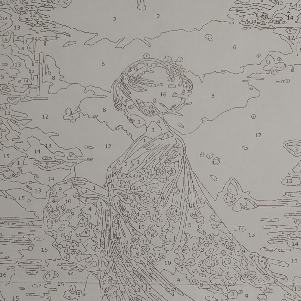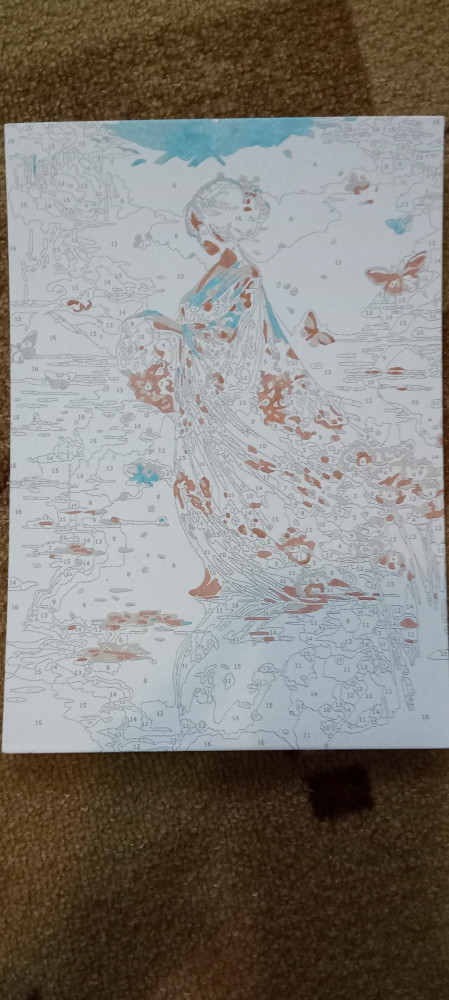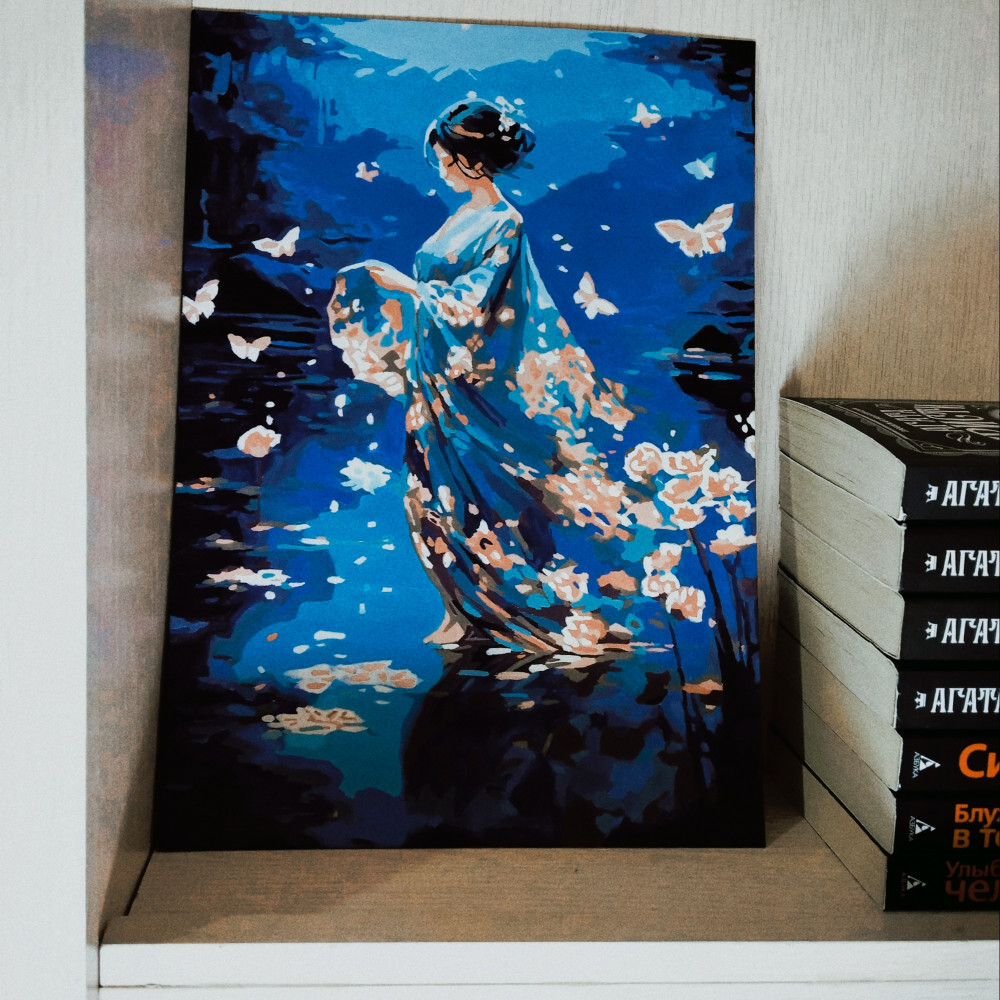 Это моя первая картина по номерам, и я очень довольна! Краски яркие, разметка на холсте понятная, рисовать было интересно. Картина с девушкой и бабочками получилась очень красивой.