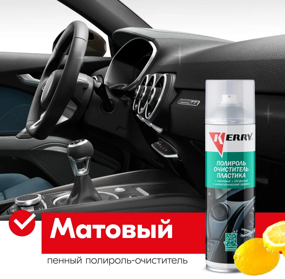 Kerry Полироль-очиститель пластика салона пенный с матовым эффектом «Лимон»