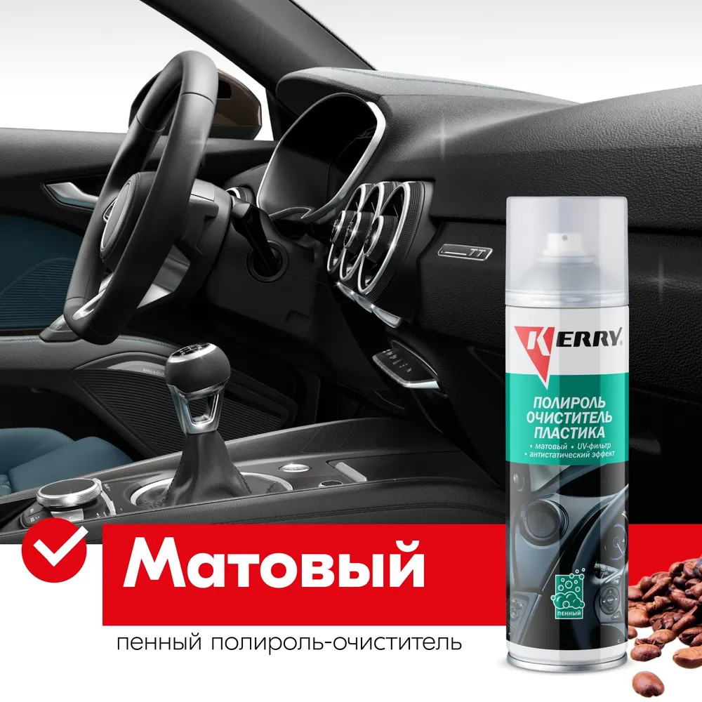 Kerry Полироль-очиститель пластика салона пенный с матовым эффектом «Кофе»