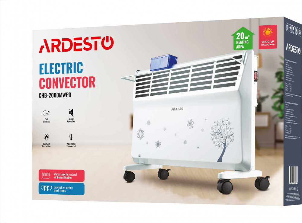 Ardesto Конвектор электрический CHB-2000MWPDВ данный момент этот товар отсутствует в продаже. Возможно, у нас найдется аналогичный или похожий товар здесь. Электрический конвектор с механическим управлением белого цвета со стильным узором, классом защиты IP20 и двумя режимами мощности 1000/2000 Вт.Рассчитан на обогрев помещений площадью до 20 м2. Класс энергозащиты — первый. В этой модели предусмотрена сушка и контейнер для естественного увлажнения воздуха. Есть защита от перегрева и датчик от опрокидывания. Эта модель обогревателя имеет два типа монтажа — настенный и напольный. Кронштейны и опоры с колесиками для напольной установки поставляются в комплекте с обогревателем. |