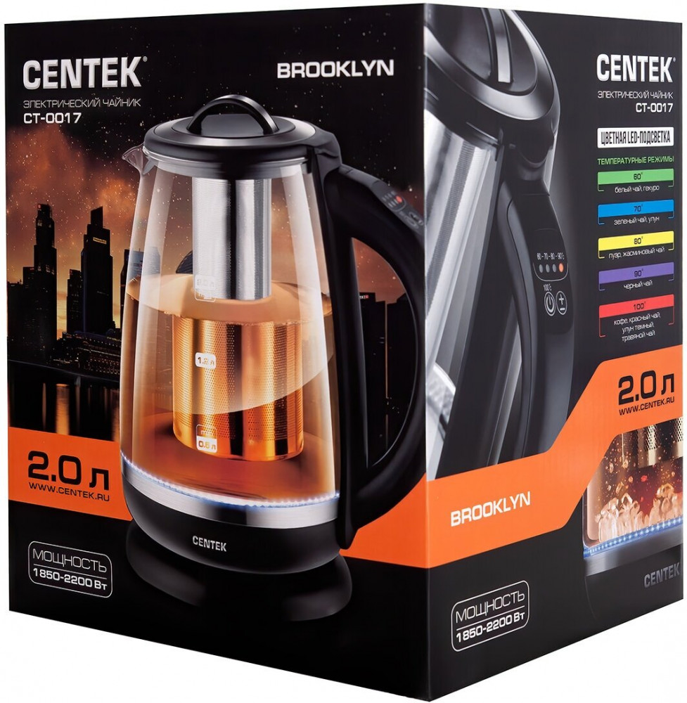 💳 Оплатить за товар можно при получении 🇰🇿 Есть бесплатная доставка по Казахстану от 1 дня 🎁 Копите бонусы с каждой покупки Чайник Centek СТ-0017 — качественное и надежное изделие объемом 2 л и мощностью 2200 Вт имеет, которое кипятит воду за несколько минут. Скрытый нагревательный элемент для безопасного нагревания воды. Материал корпуса — жаропрочное стекло. Пластиковая ручка чайника с кнопкой включения и индикаторами выбранной температуры не перегревается и не скользит в ладони во время использования. |