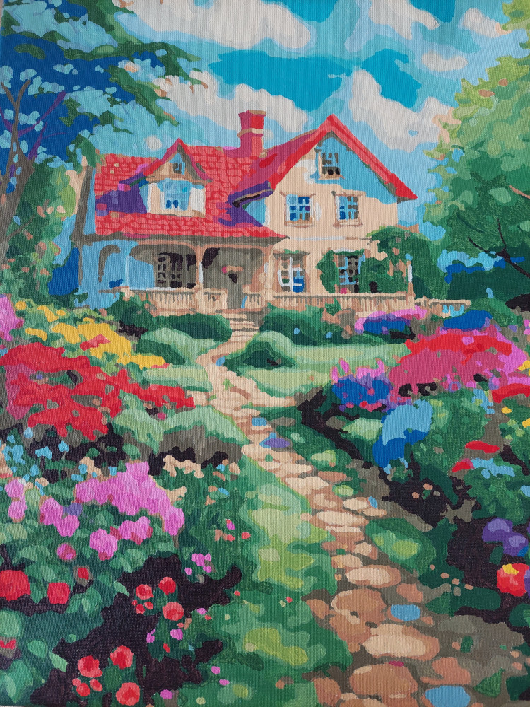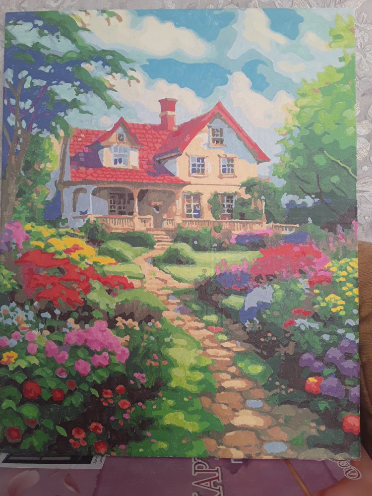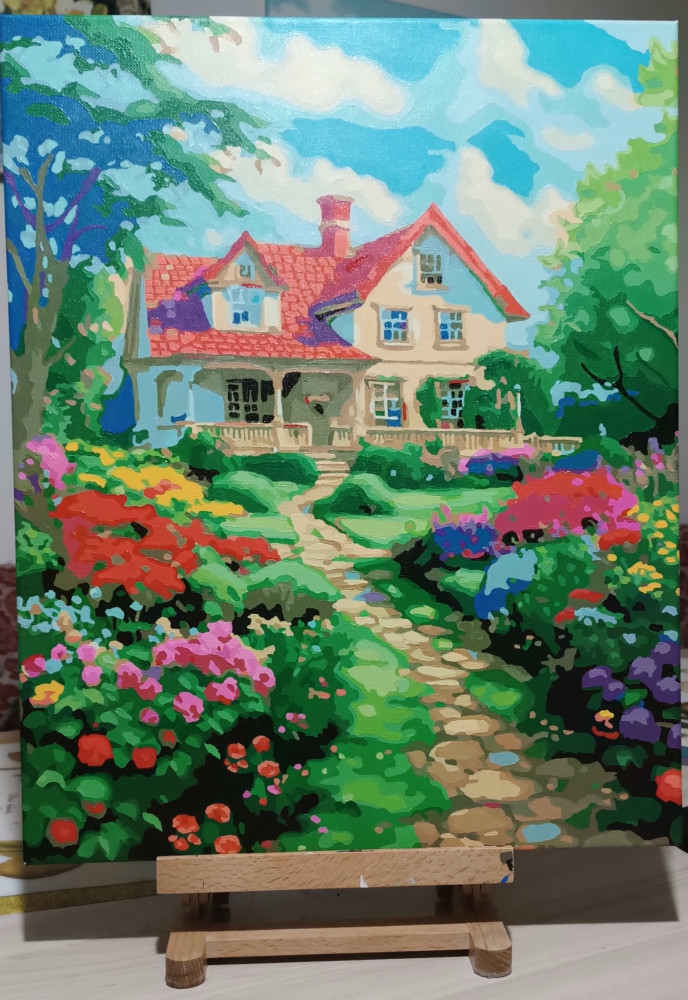Однозначно рекомендую к покупке картины по номерам Арт фея. Это не первая картинка которую покупаю, совершенно придраться не к чему. Комплектация полная, все в наличии краски и контрольный лист, и кисточки, и средство для подвешивания. Краски яркие, не густые и не жидкие, такие, как надо. Цифры хорошо различимы, нет проблем с закрашиванием даже мелких деталей. Краски прекрасно ложатся на холст. Спасибо производителю за качественную и относительно недорогую продукцию. Приобрела к тому же со скидкой, очень довольна. Нравится рисовать картины по номерам, есть творческая жилка, но к сожалению нет специального образования, нашла такой способ реализоваться. К тому же такие картины хороший подарок. По крайней мере эту "застолбила" моя подруга заядлая дачница. Уж очень она напоминает её цветник и дорожку к даче. Благодарю Флип КЗ за доставку и разнообразие товаров.
