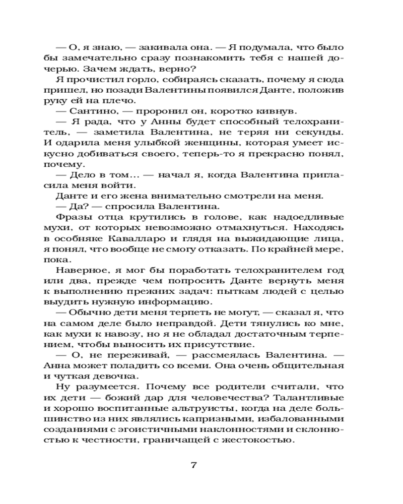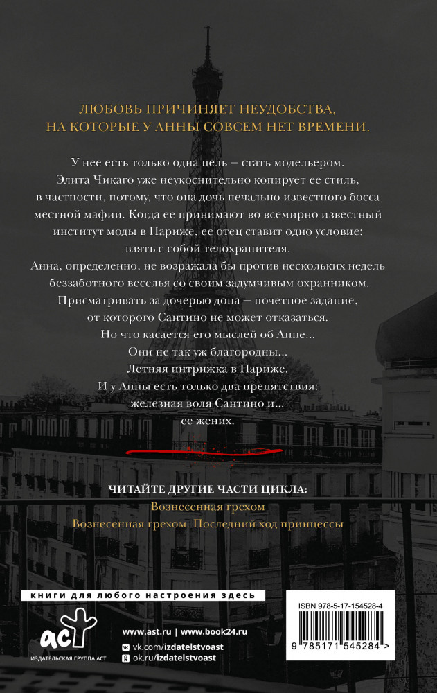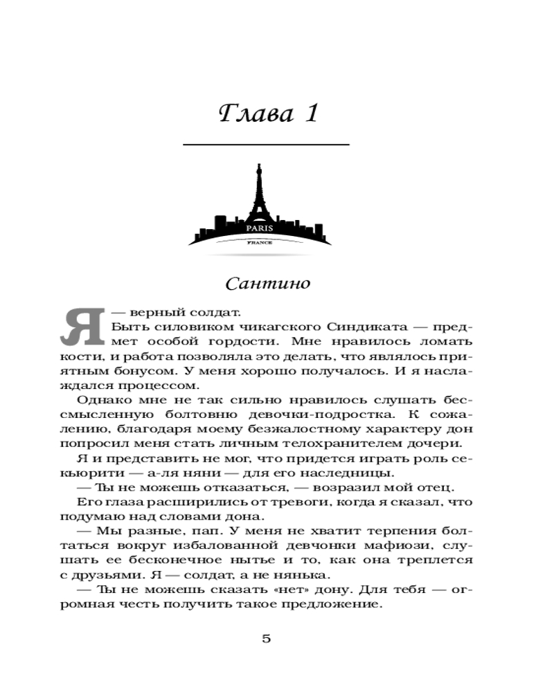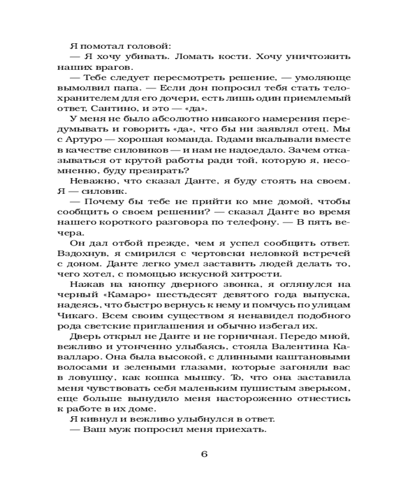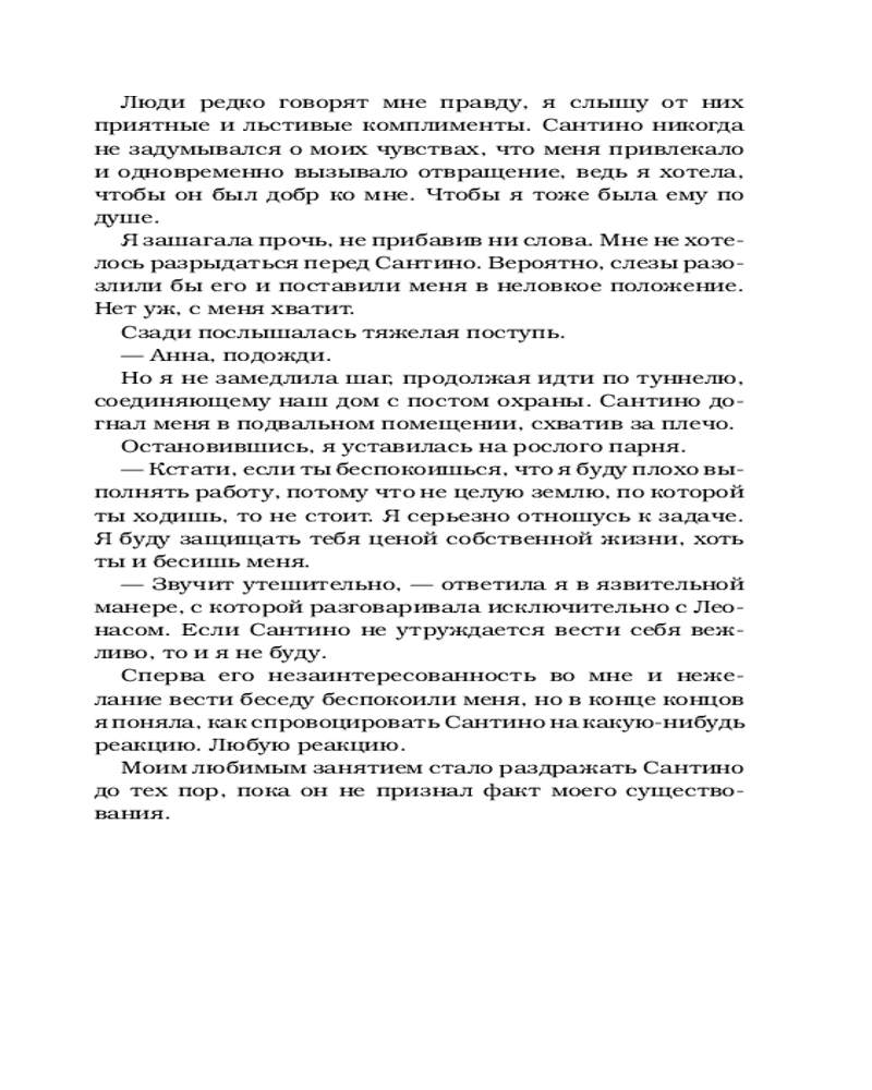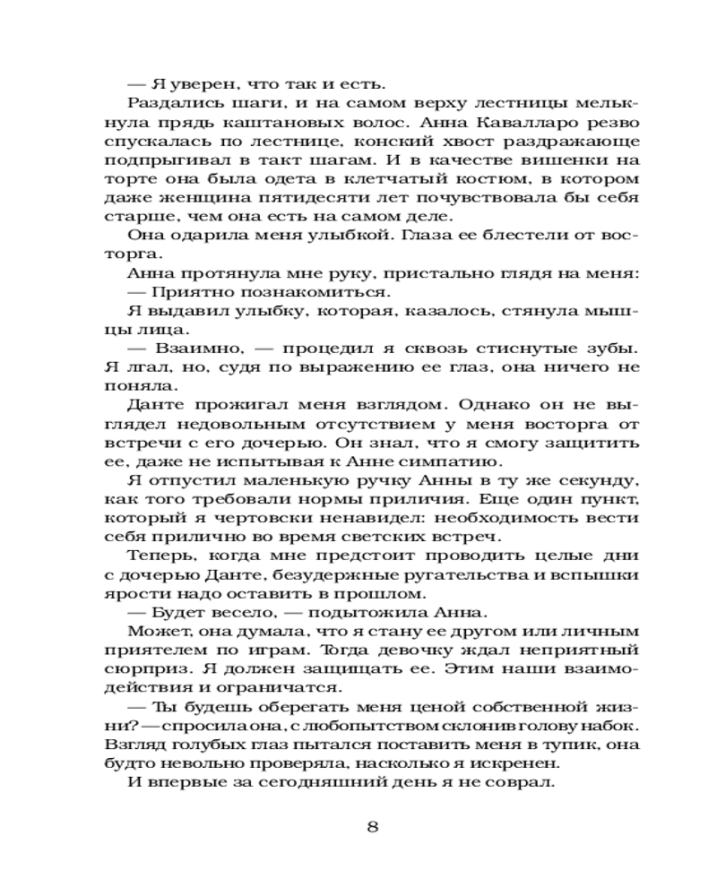 Из всей серии нравится именно эта книга. Анна и Сантино пока самая любимая пара из серии Грехи отцов. Анна очень волевая, смелая девушка. Зацепило что несмотря на все Сантино все равно защищал ее.