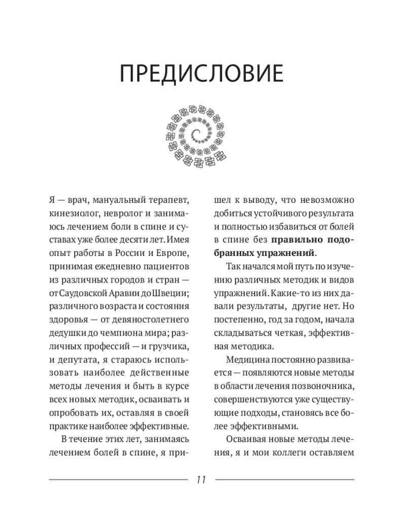 Доктор Алексеев доказал, что «обычные» упражнения для позвоночника могут оказаться бесполезными, а иногда даже опасными при некоторых заболеваниях. В результате многолетних исследований, проб, наблюдений он нашел решение — разработал комплекс специальных упражнений, которые позволяют полностью, в короткие сроки и без вреда организму на самом деле решить проблемы со спиной, а также укрепить и защитить позвоночник.