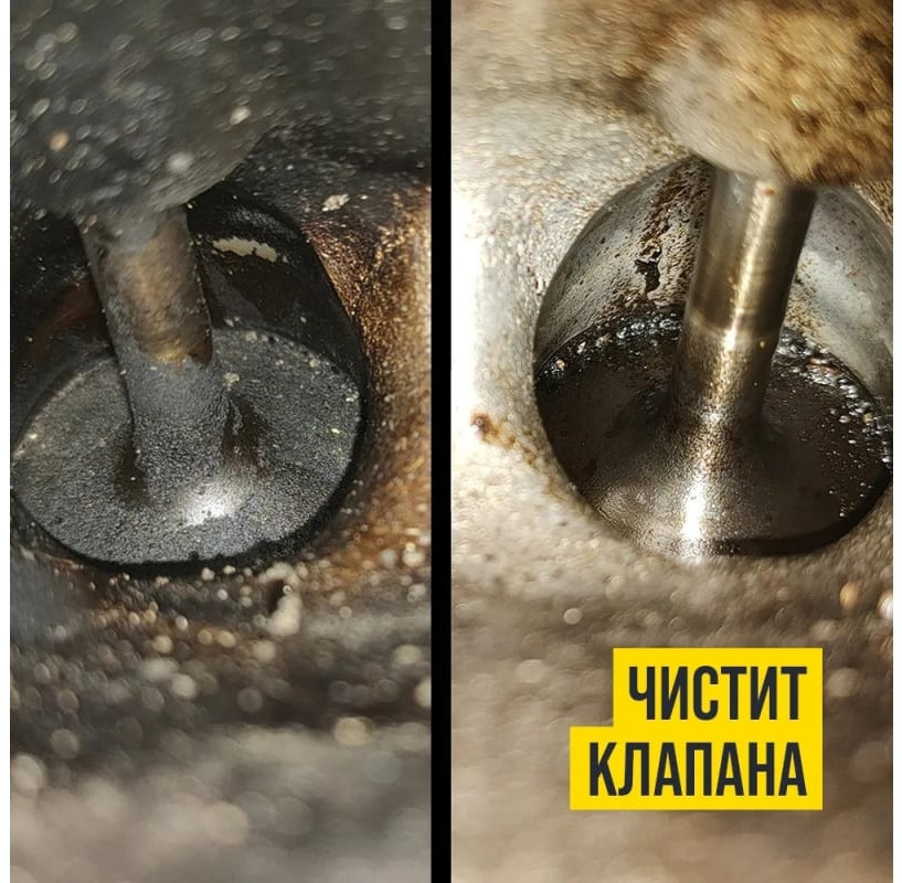 • повышает компрессию — устраняет загрязнения на клапанах, повышая герметичность их прилегания к седлу;