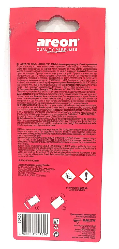 Ароматизатор подвесной картон Areon Sex Drive Tropical — освежитель в обновленном стильном дизайне. Компактный ароматизатор идеально подходит для любого помещения. Популярные ароматы способны обеспечить свежесть и яркий взрыв эмоций.