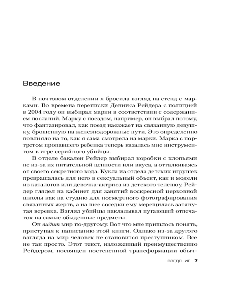 Криминальный психолог Кэтрин Рамсленд совершила невозможное: уговорила Денниса Рейдера, до сих пор находящегося в тюрьме, самого открыть миру свою душу. Спустя пять лет переписок и телефонных разговоров они создали «управляемую автобиографию» BTK — рассказ убийцы от первого лица, снабженный комментариями психолога. Впервые маньяк рассказывает свою историю в самых интимных подробностях — от первых импульсов к насилию в раннем детстве до момента поимки. Книга «Откровения маньяка BTK» наглядно показывает, как мыслят маньяки и психопаты и как их извращенные фантазии перерастают в жестокие убийства. |