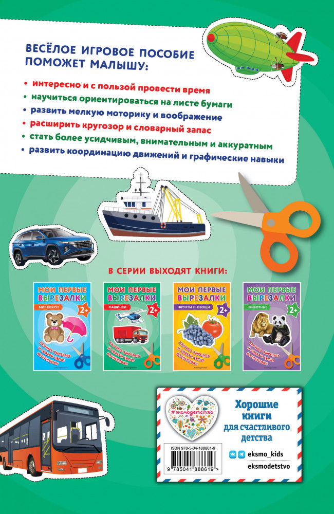 💳 Оплатить за товар можно при получении 🇰🇿 Есть бесплатная доставка по Казахстану от 1 дня 🎁 Копите бонусы с каждой покупки Серия: Учимся вырезать из бумаги Увлекательная красочная книга-вырезалка для малышей поможет расширить кругозор ребенка, развить мелкую моторику, внимание, воображение, речь, увеличить словарный запас. Начинать заниматься можно с двух лет, постепенно приучая малыша правильно держать ножницы и ориентироваться на листе. |