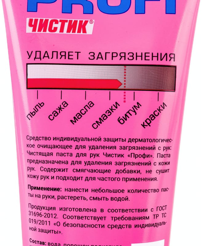 Вода, порошок полиэтилена, лауретсульфат натрия, лаурил глюкозид, глицерин, диэтаноламиды жирных кислот кокосового масла, натриевая соль карбоксиметилцеллюлозы, натрий хлористый, отдушка, Катон CG, кислота лимонная, краситель кармуазин (Е122).