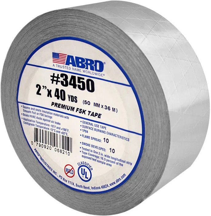 Лента алюминиевая 50 мм Abro — алюминиевая фольга, усиленная синтетическими волокнами. Применяется при проведении ремонтных, монтажных и теплоизоляционных работ. Обеспечивает надежную теплоизоляцию при герметизации стыков и швов. Рабочая температура от −20°С до +100°С.