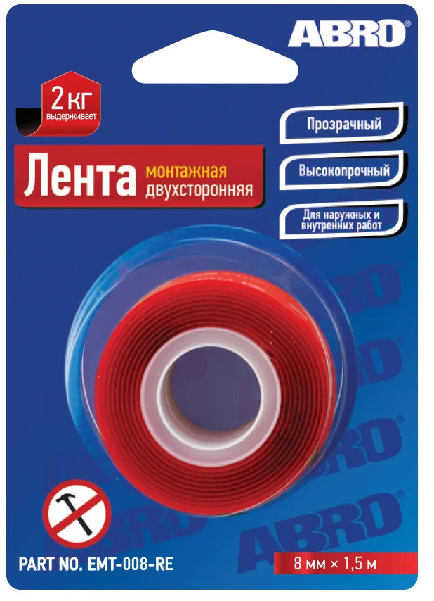 Лента клейкая монтажная двусторонняя прозрачная — профессиональная монтажная двухсторонняя лента повышенной прочности. Разработана для наружного и внутреннего, промышленного и бытового использования. Применяется при ремонте автомобилей (монтаж зеркал, функциональных накладок, молдингов), в электронике (монтаж сенсорных дисплеев), при производстве мебели и проч. Идеальна для создания прозрачного соединения. Прочность на отслаивание — 2,416 кгс/25 мм. Совместима с деревом, стеклом, пластиком. Рулон выдерживает до 60 кг.