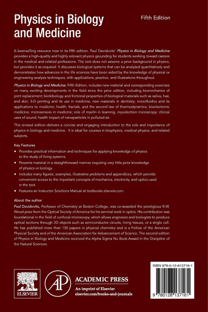 Physics in Biology and MedicineВ данный момент этот товар отсутствует в продаже. Возможно, у нас найдется аналогичный или похожий товар здесь. A best-selling resource now in its fifth edition, Paul Davidovits’ Physics in Biology and Medicine provides a high-quality and highly relevant physics grounding for students working toward careers in the medical and related professions. The text does not assume a prior background in physics, but provides it as required. It discusses biological systems that can be analyzed quantitatively and demonstrates how advances in the life sciences have been aided by the knowledge of physical or engineering analysis techniques, with applications, practice, and illustrations throughout. |