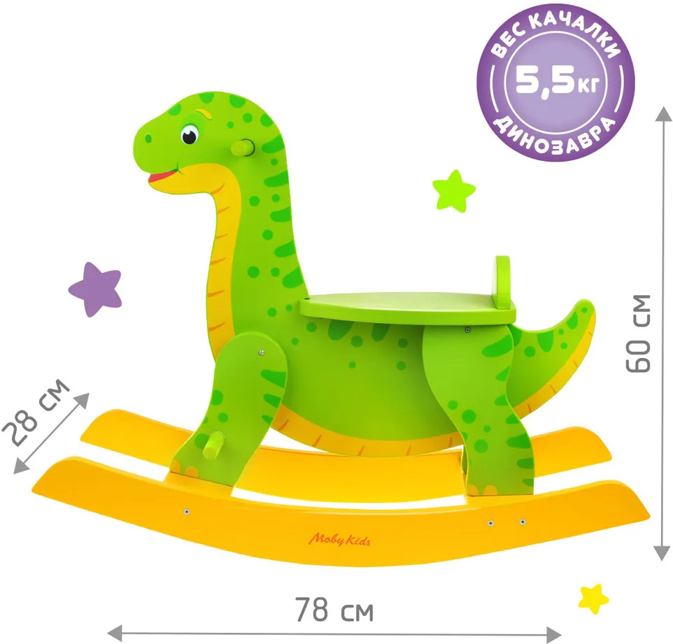 Дизайн качалки «Динозавр» подойдет как для мальчиков, так и для девочек. Качаться на качалке — это не только очень весело, но и полезно для развития координации движений у малыша. В конструкции качалки продумано все для безопасного использования и максимального комфорта катающегося. Ребенок садится на сиденье, держится обеими руками за ручки качалки, а ноги ставит на специальную подставку. На сиденье предусмотрена ограничительная спинка, чтобы ребенок не съезжал назад во время качания.