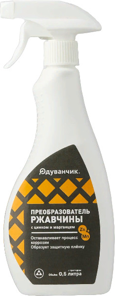 Способ применения: перед нанесением встряхнуть. С обрабатываемой поверхности удалить рыхлый слой ржавчины, смазку, грязь, пыль. На очищенную поверхность нанести методом распыления преобразователь. Не допускать попадания влаги на поверхность при нанесении. Через 15-20 минут после высыхания образуется матовое защитное фосфатно-цинковое покрытие серого цвета. После высыхания удалить избыточный налет состава с поверхности металла щеткой. Окончательное высыхание второго слоя 30-40 минут. Наносить лакокрасочный материал можно через 2 часа после нанесения последнего слоя преобразователя.
