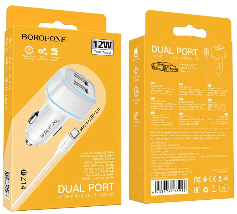 Borofone Зарядное устройство автомобильноеВ данный момент этот товар отсутствует в продаже. Возможно, у нас найдется аналогичный или похожий товар здесь. Адаптер автомобильный в прикуриватель. Предназначен для питания и зарядки различных моделей телефонов, смартфонов и других устройств от гнезда USB. Корпус адаптера сделан из прочного пластика, имеет защиту от перегрузки, перезарядки, короткого замыкания. Поддерживает технологию быстрой зарядки. В комплекте идет кабель длиной 1 м для зарядки через разъем micro. |