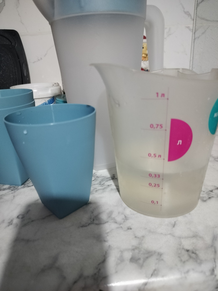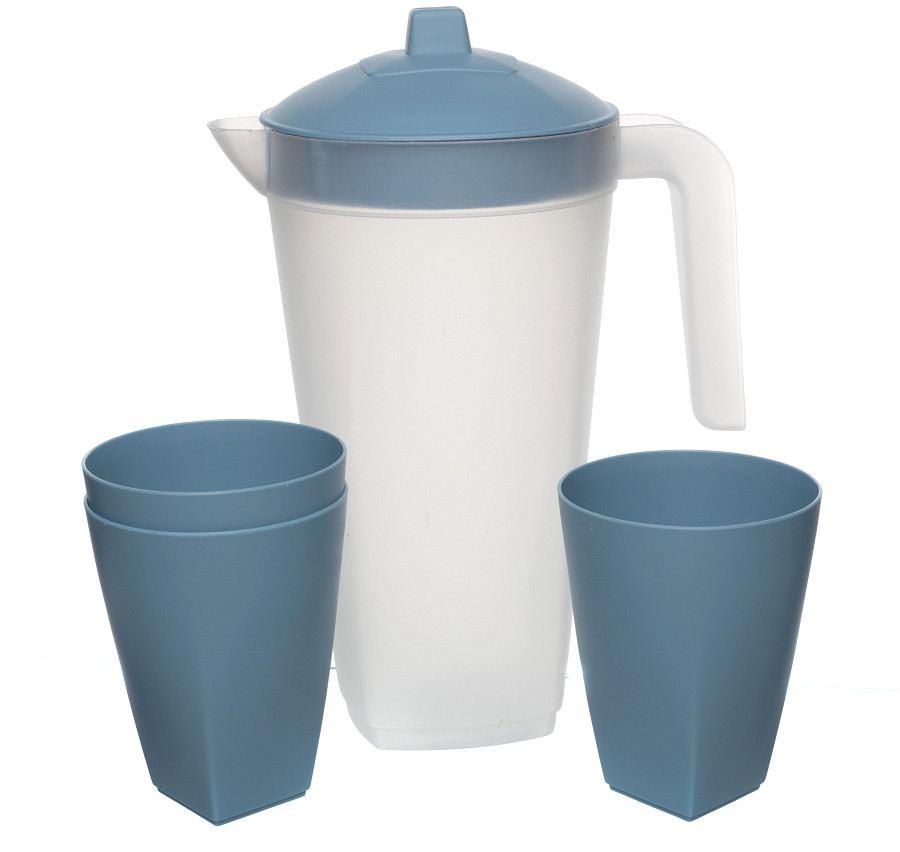 Незаменимая вещь в домашнем хозяйстве — кувшин. Изготовлен из прочного полипропилена, отличается практичностью, простотой и надежностью. Подойдет для хранения любых напитков, можно использовать в холодильнике, мыть в посудомоечной машине. Объем стакана — 500 мл. В наборе: