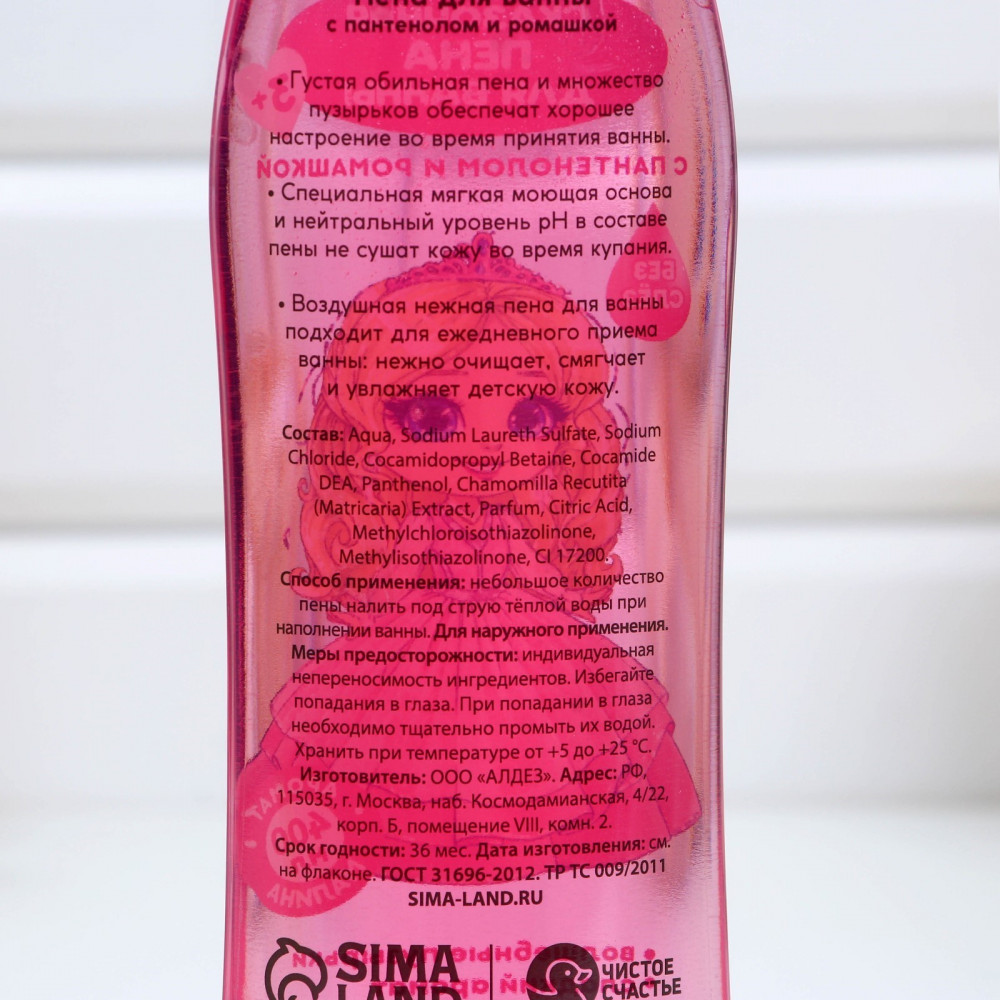 Чистое счастье Пена для ванны с пантенолом и ромашкой «Сказочная»В данный момент этот товар отсутствует в продаже. Возможно, у нас найдется аналогичный или похожий товар здесь. Серия: Для самых маленьких Густая обильная пена и множество пузырьков обеспечат хорошее настроение во время принятия ванны. Специальная мягкая моющая основа и нейтральный уровень рН в составе пены не сушат кожу во время купания. Воздушная нежная пена с ароматом малины подходит для ежедневного приема ванны: нежно очищает, смягчает и увлажняет детскую кожу. |