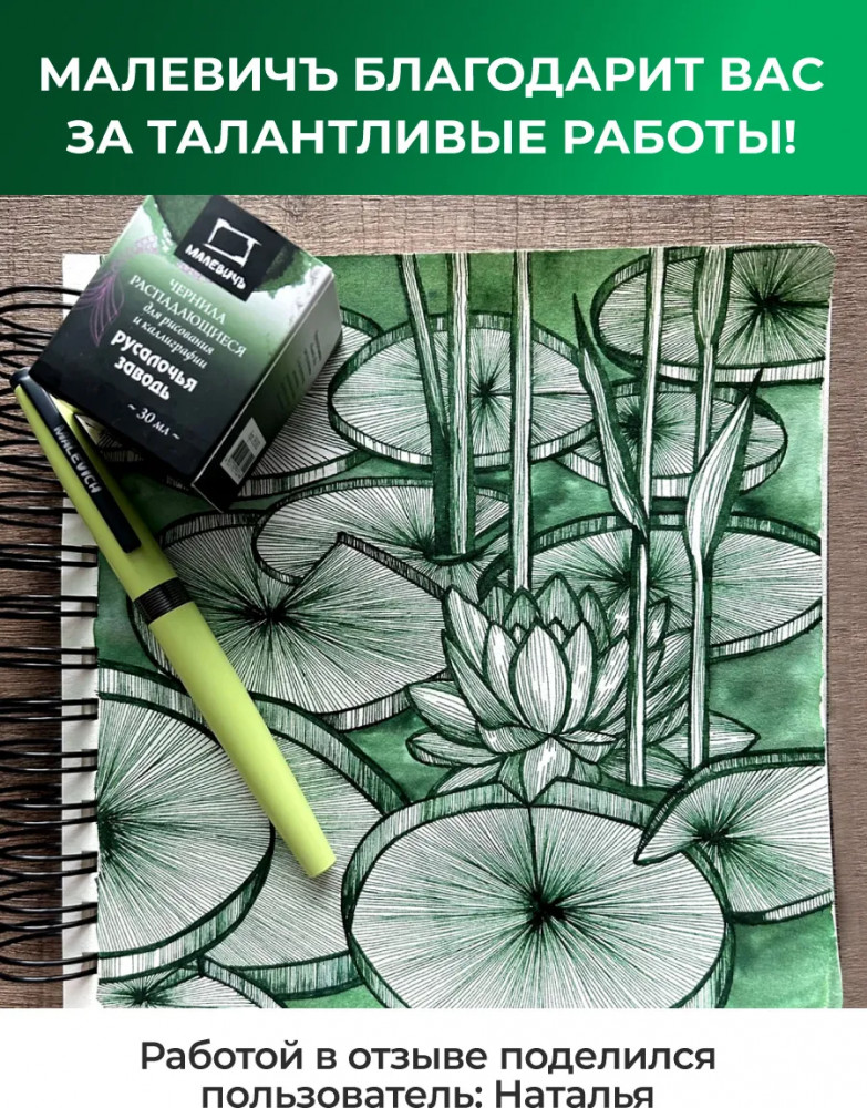 МалевичЪ Чернила распадающиеся для рисования и каллиграфии, русалочья заводь
