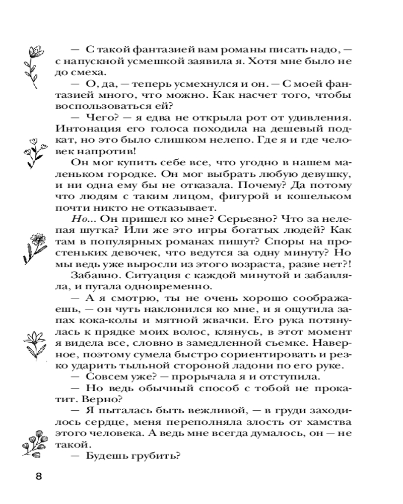 💳 Оплатить за товар можно при получении 🇰🇿 Есть бесплатная доставка по Казахстану от 1 дня 🎁 Копите бонусы с каждой покупки Серия: Young adult. Романтика Он — звезда нашего города, капитан хоккейной команды. Красивый и успешный. Мечта многих девчонок. Я — обычная неудачница. Завалила экзамены в университет. Упустила свою мечту — учиться в танцевальном колледже в Америке. Съехала от родителей в комнатушку два на два метра и осталась без лучшей подруги. Что нас может связывать? Правильно, ничего. Но в один летний день, он ворвался вихрем в мою жизнь. Я ему понравилась? Или, может, он преследует меня? Что в конце концов происходит? Зачем я понадобилась этому парню? |