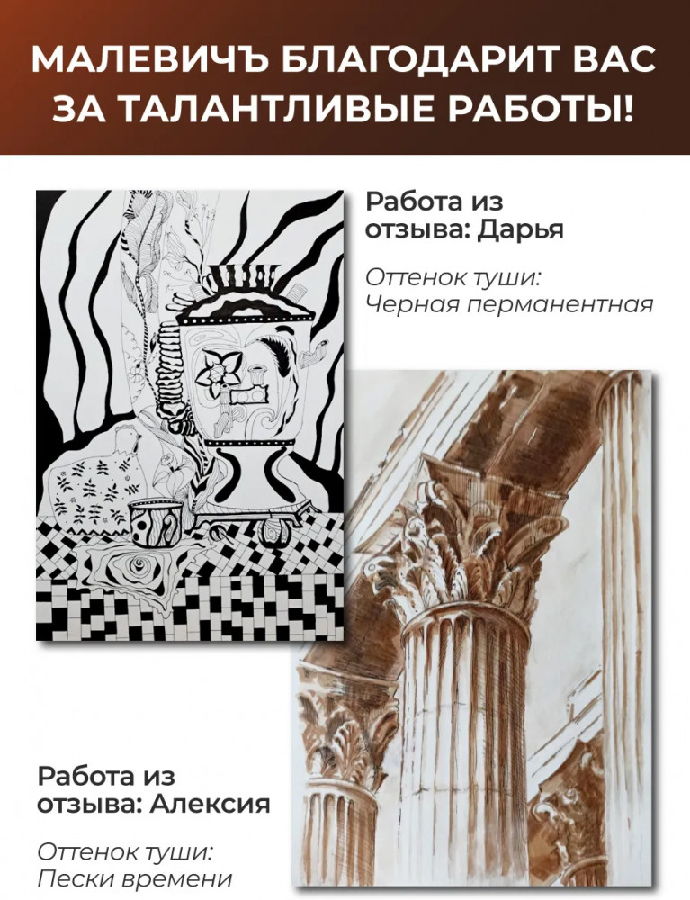 МалевичЪ Тушь для рисования и каллиграфии, розовый кварц