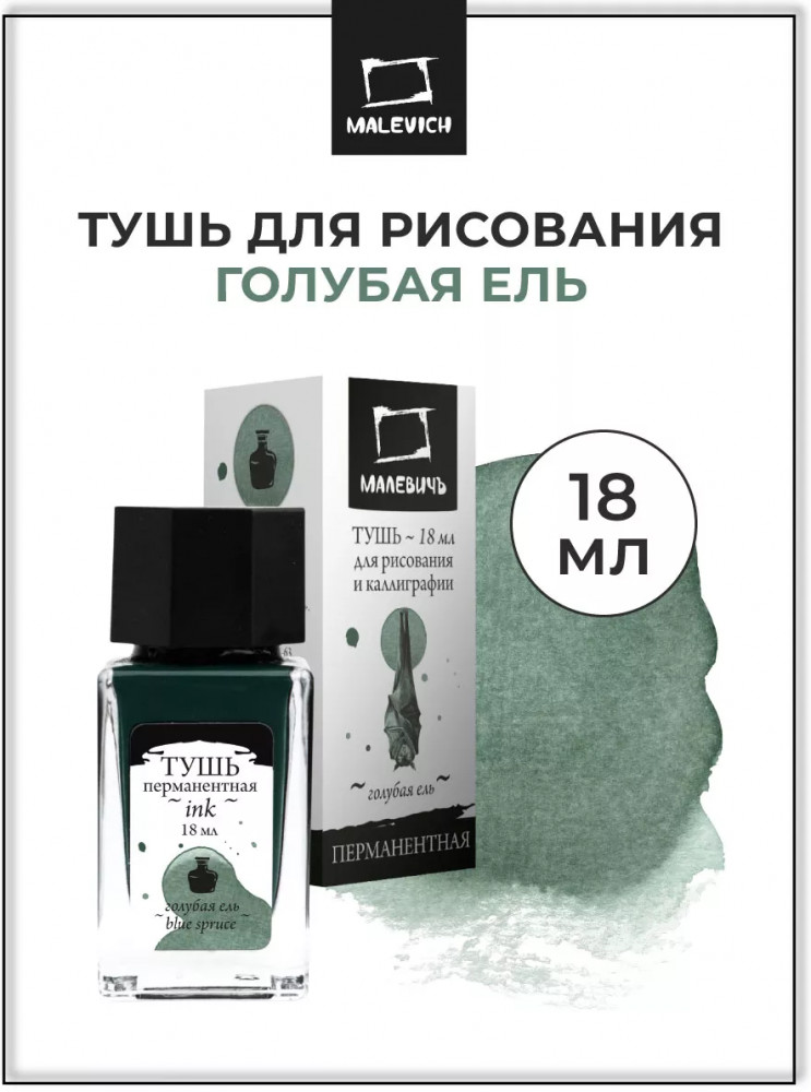 МалевичЪ Тушь для рисования и каллиграфии, голубая ель