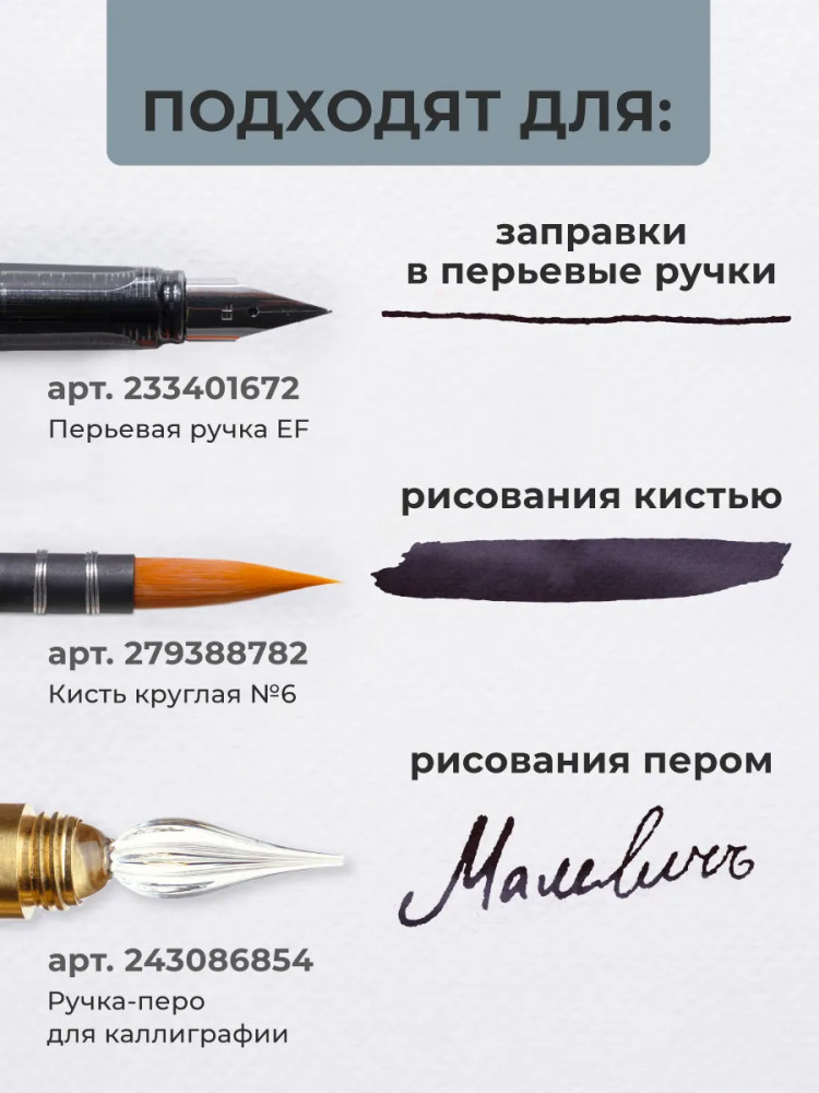 МалевичЪ Чернила для рисования и каллиграфии, обсидиан