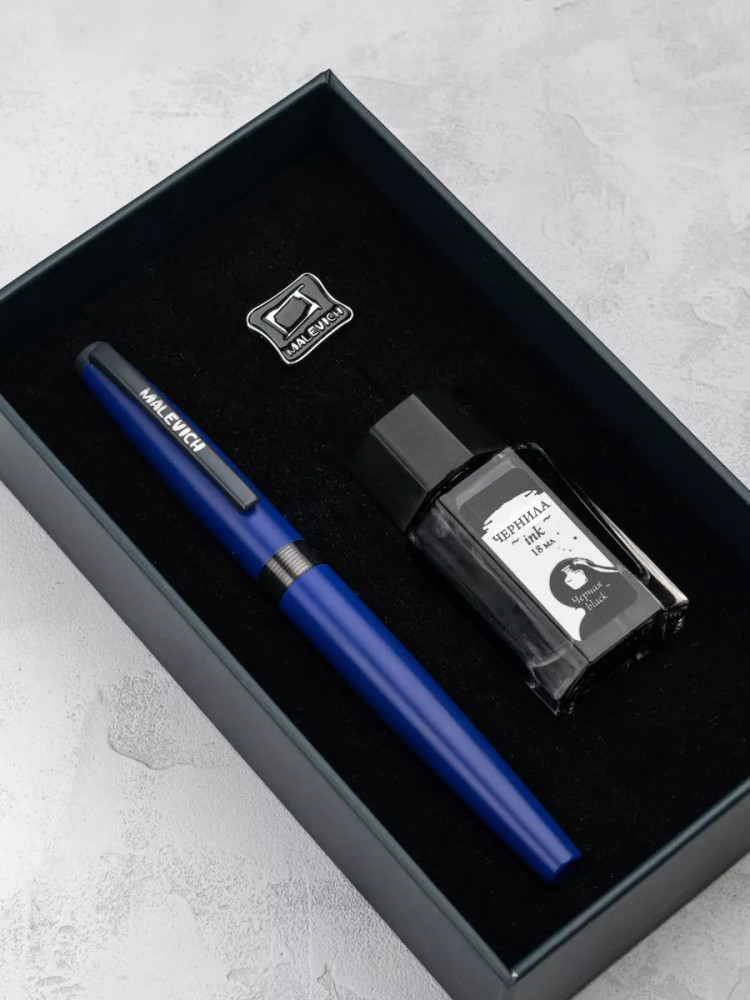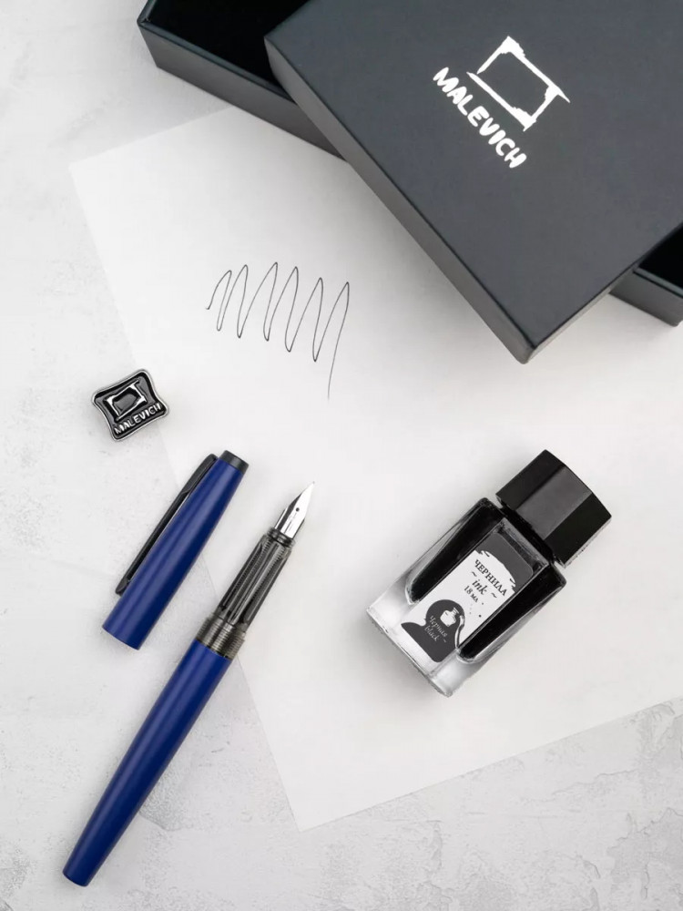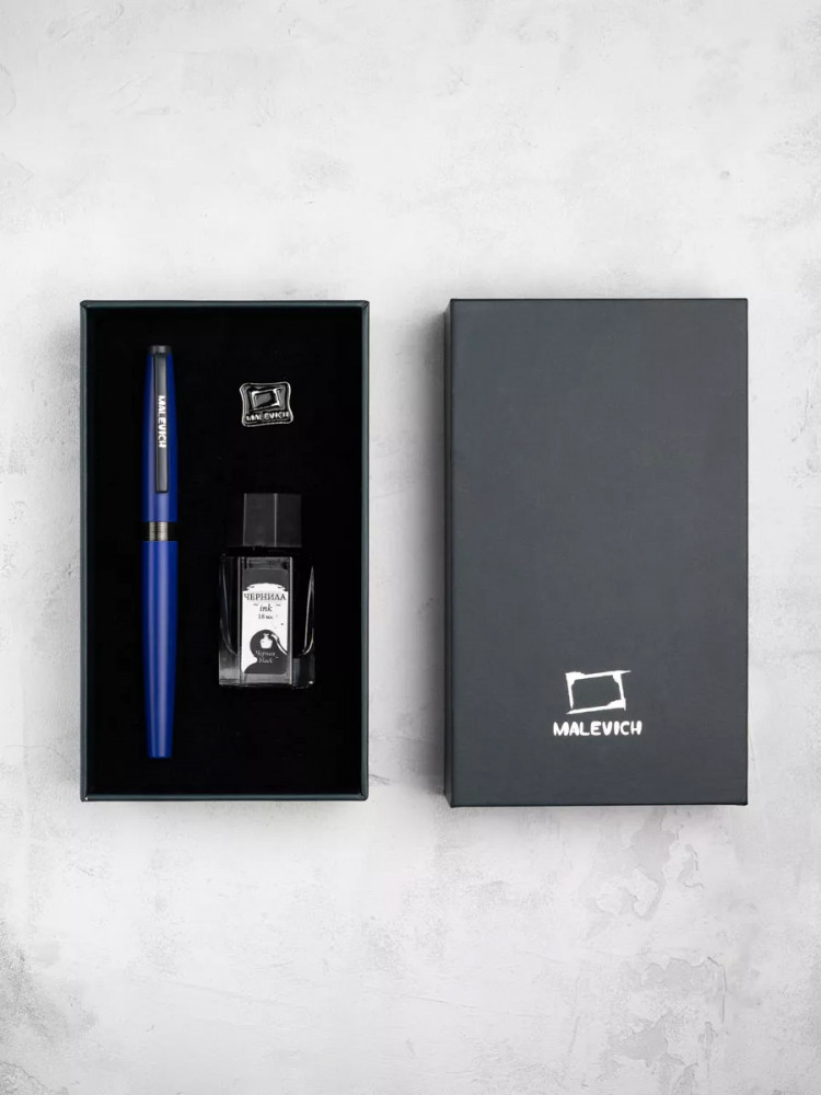 Ручка перьевая Малевичъ с конвертером в наборе с чернилами и фирменным уникальным значком в подарочной упаковке. Такой набор станет отличным подарком любителям каллиграфии или скетчинга. Ручка не заправлена, но в наборе уже есть все необходимое для творчества. Чернильная перьевая ручка с конвертером — идеальный выбор для ценителей классической канцелярии. Лаконичный дизайн ручки совмещает в себе вековые традиции, современные технологии и качество бренда. Ручка Малевич обладает тончайшим пером EF — толщина линии 0,4 мм. Чернила в наборе имеют насыщенный плотный черный цвет. Объем 18 мл, не перманентные.