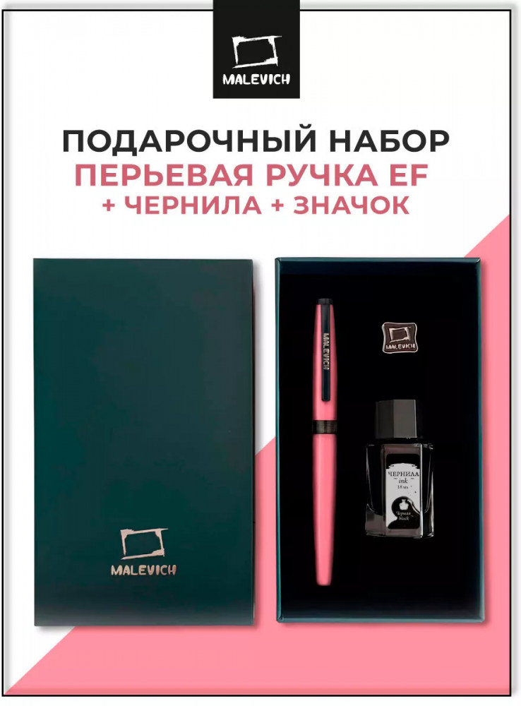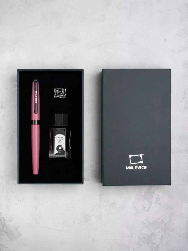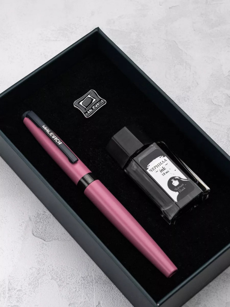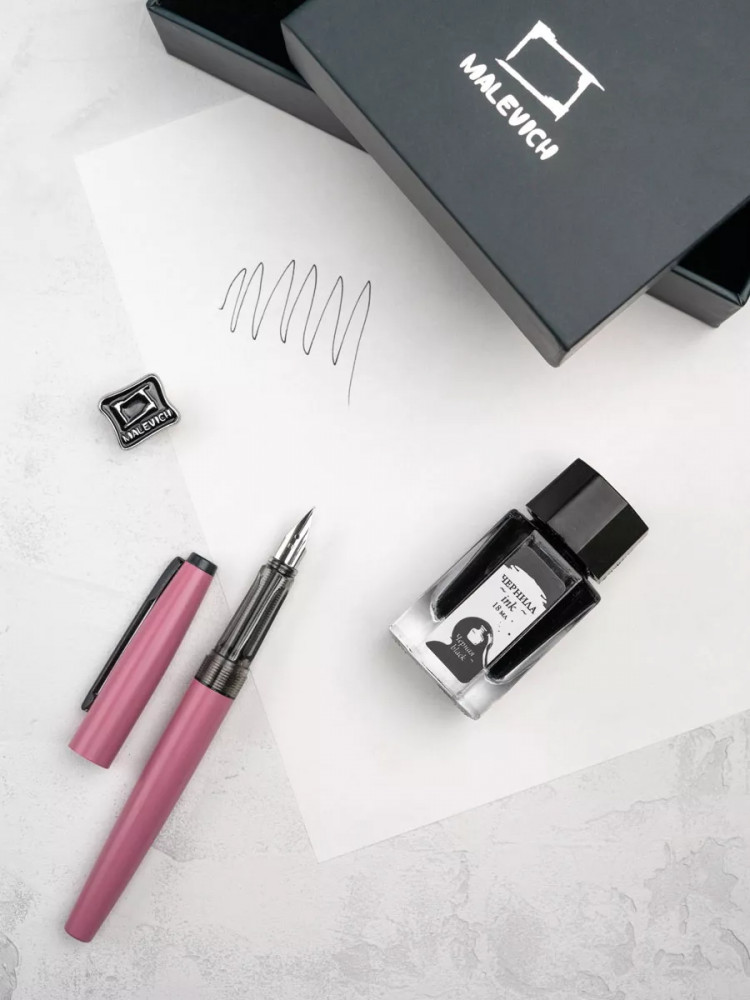 Ручка перьевая Малевичъ с конвертером в наборе с чернилами и фирменным уникальным значком в подарочной упаковке. Такой набор станет отличным подарком любителям каллиграфии или скетчинга. Ручка не заправлена, но в наборе уже есть все необходимое для творчества. Чернильная перьевая ручка с конвертером — идеальный выбор для ценителей классической канцелярии. Лаконичный дизайн ручки совмещает в себе вековые традиции, современные технологии и качество бренда. Ручка Малевич обладает тончайшим пером EF — толщина линии 0,4 мм. Чернила в наборе имеют насыщенный плотный черный цвет. Объем 18 мл, не перманентные.