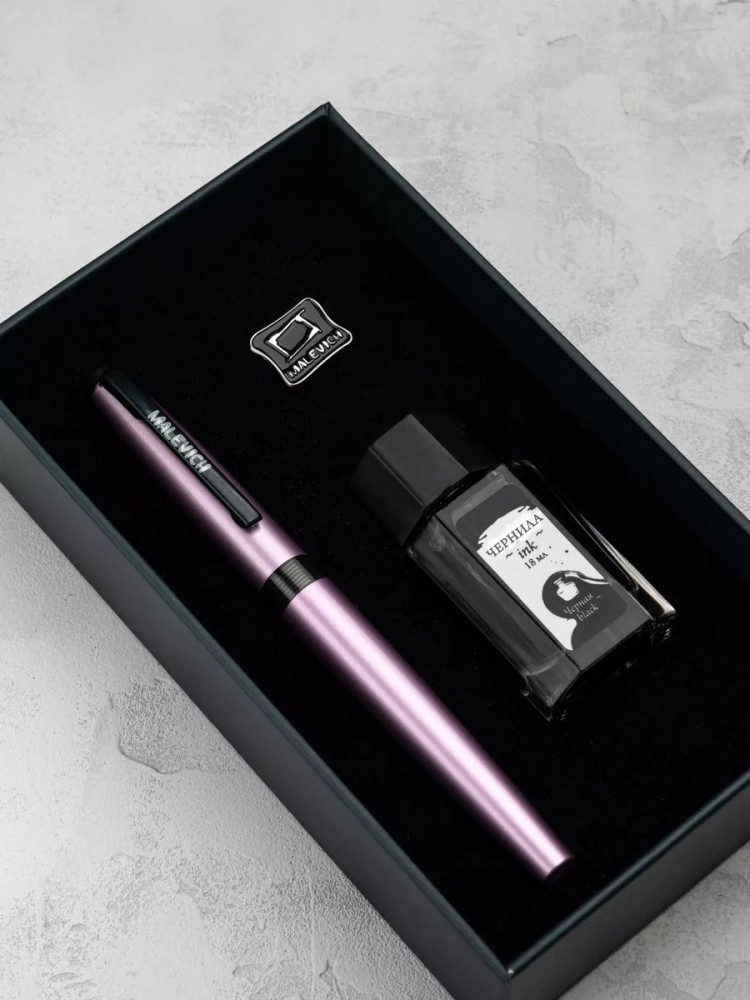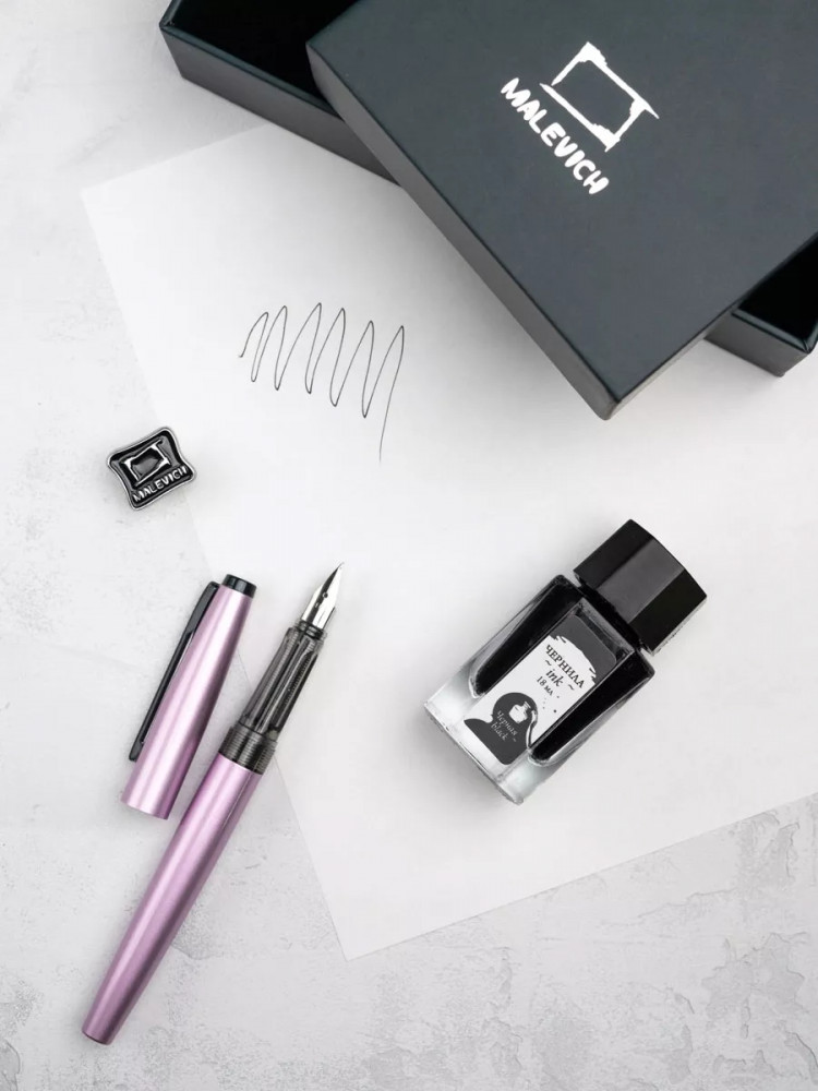 Ручка перьевая Малевичъ с конвертером в наборе с чернилами и фирменным уникальным значком в подарочной упаковке. Такой набор станет отличным подарком любителям каллиграфии или скетчинга. Ручка не заправлена, но в наборе уже есть все необходимое для творчества. Чернильная перьевая ручка с конвертером — идеальный выбор для ценителей классической канцелярии. Лаконичный дизайн ручки совмещает в себе вековые традиции, современные технологии и качество бренда. Ручка Малевич обладает тончайшим пером EF — толщина линии 0,4 мм. Чернила в наборе имеют насыщенный плотный черный цвет. Объем 18 мл, не перманентные.