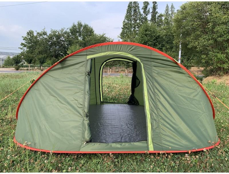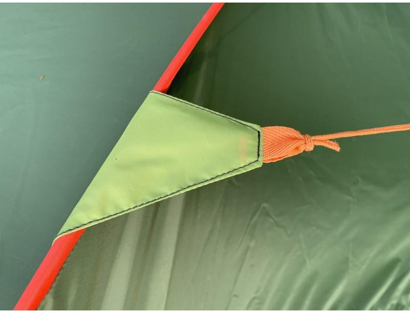 Палатка относится к водостойким. Тент из полиэстера с полиуретановой пропиткой, у которого все швы проклеены. За счет такой проклейки швов происходит полная защита от протекания тента во время дождя. Внутренний слой палатки отшит из легкой и воздухопроницаемой ткани, которая оснащена москитной сеткой, не пропускающей в Ваш туристический дом различных насекомых и обеспечивает вентиляцию. Большим плюсом также будет наличие двух выходов, что сразу создает дополнительный поток воздуха в жаркий день и удобство перемещения. Палатка рассчитана на четырех человек. В ней вы можете спокойно отдохнуть семьей, она вместительная и комфортная.
