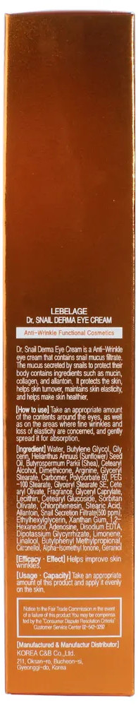 Lebelage Крем для кожи вокруг глаз с муцином улитки «Dr. Snail Derma Eye Cream»
