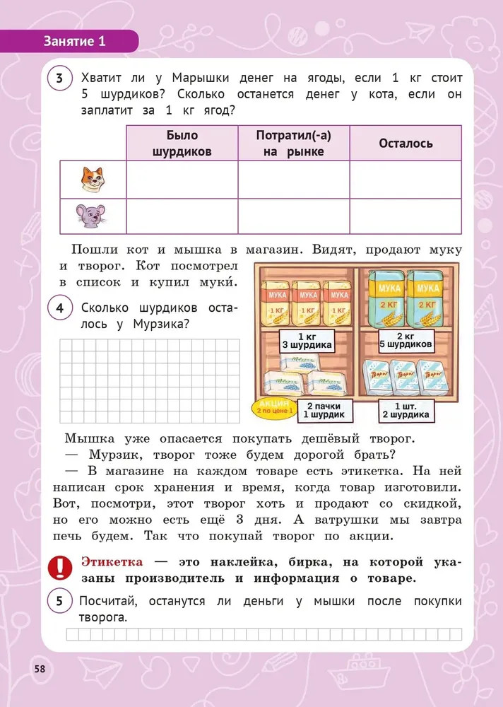 💳 Оплатить за товар можно при получении 🇰🇿 Есть бесплатная доставка по Казахстану от 1 дня 🎁 Копите бонусы с каждой покупки Учебное пособие предназначено для организации внеурочной деятельности обучающихся в 1-м классе и формирует у них основы функциональной грамотности. Занятия курса представлены в четырёх разделах: «Математическая грамотность», «Читательская грамотность», «Естественно-научная грамотность» и «Финансовая грамотность». Для работы предлагаются задания разных типов. Выполнение таких заданий носит практико-ориентированную направленность и учит обучающихся применять полученные знания в жизни, развивает познавательный интерес, креативное мышление, внимание, логику, формирует умение обосновывать и защищать свою точку зрения. |