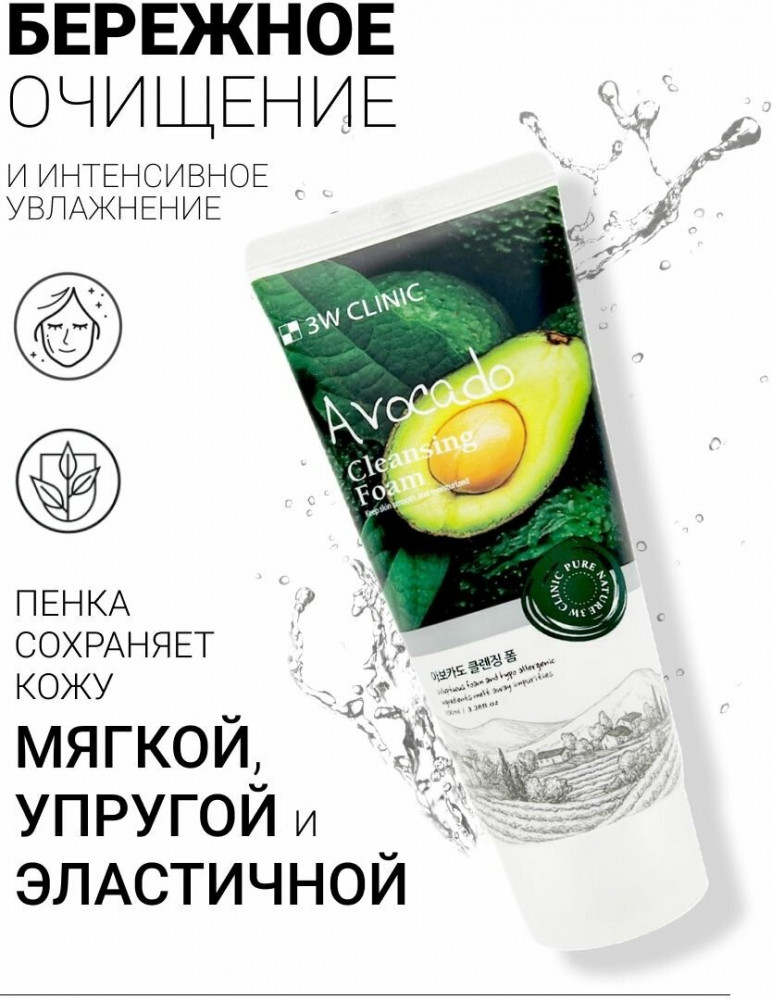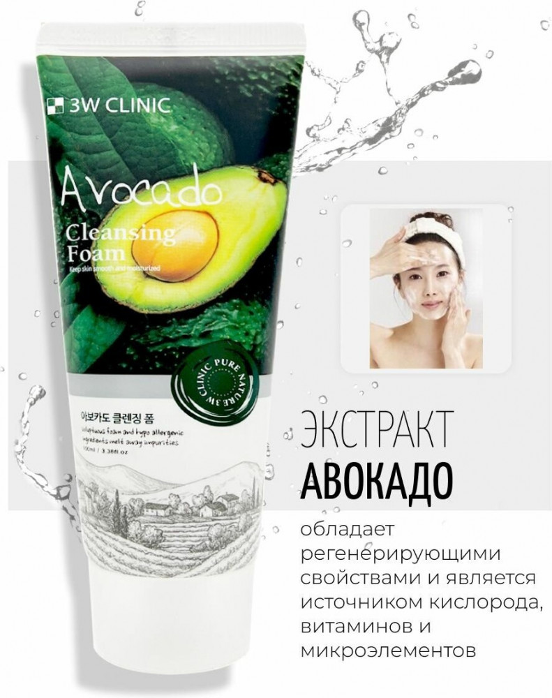 3W CLINIC Пенка для умывания очищающая с авокадо «Avocado Cleansing Foam»