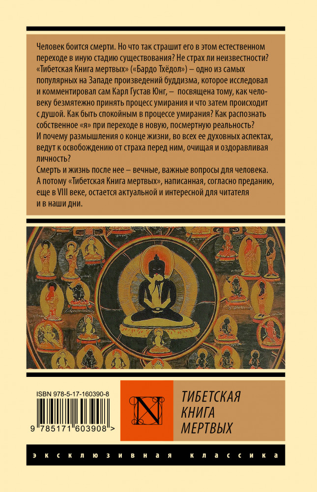 «Тибетская Книга мертвых» («Бардо Тхёдол») — одно из самых популярных на Западе произведений, которое исследовал и комментировал сам Карл Густав Юнг, — посвящена тому, как человеку безмятежно принять процесс умирания и что затем происходит с душой. Как быть спокойным в процессе умирания? Как распознать собственное «я» при переходе в новую, посмертную реальность? И почему размышления о конце жизни, во всех ее духовных аспектах, ведут к освобождению от страха перед ним, очищая и оздоравливая личность?