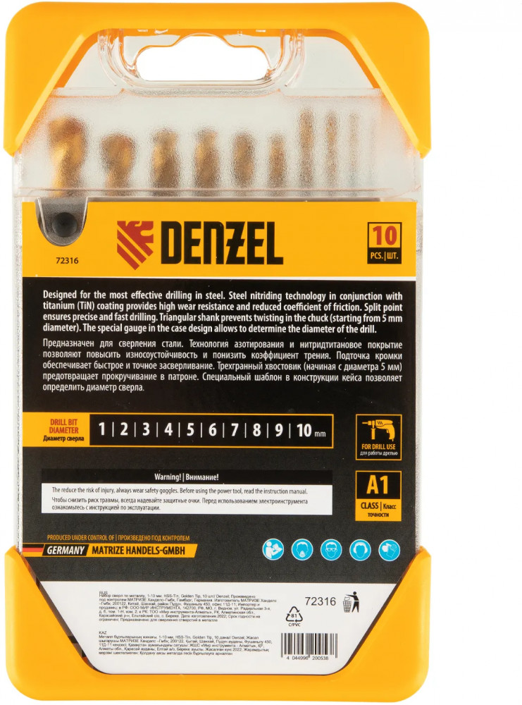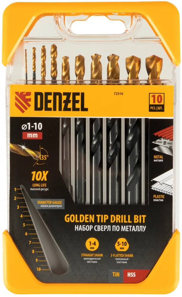 💳 Оплатить за товар можно при получении 🇰🇿 Есть бесплатная доставка по Казахстану от 1 дня 🎁 Копите бонусы с каждой покупки Набор Denzel Golden Tip включает 10 сверл по металлу из стали HSS-Tin, предназначенных для получения отверстий диаметром 1-10 мм в стальных заготовках. Оснастке присвоен класс точности A1: вышлифованные на высокоточном оборудовании профили имеют оптимальную геометрию, что позволяет получать идеально ровные отверстия. Сверла упакованы в пластиковый кейс, в крышке которого имеется шаблон для быстрого определения диаметра сверла. Набор будет полезен в быту и профессиональной сфере. |