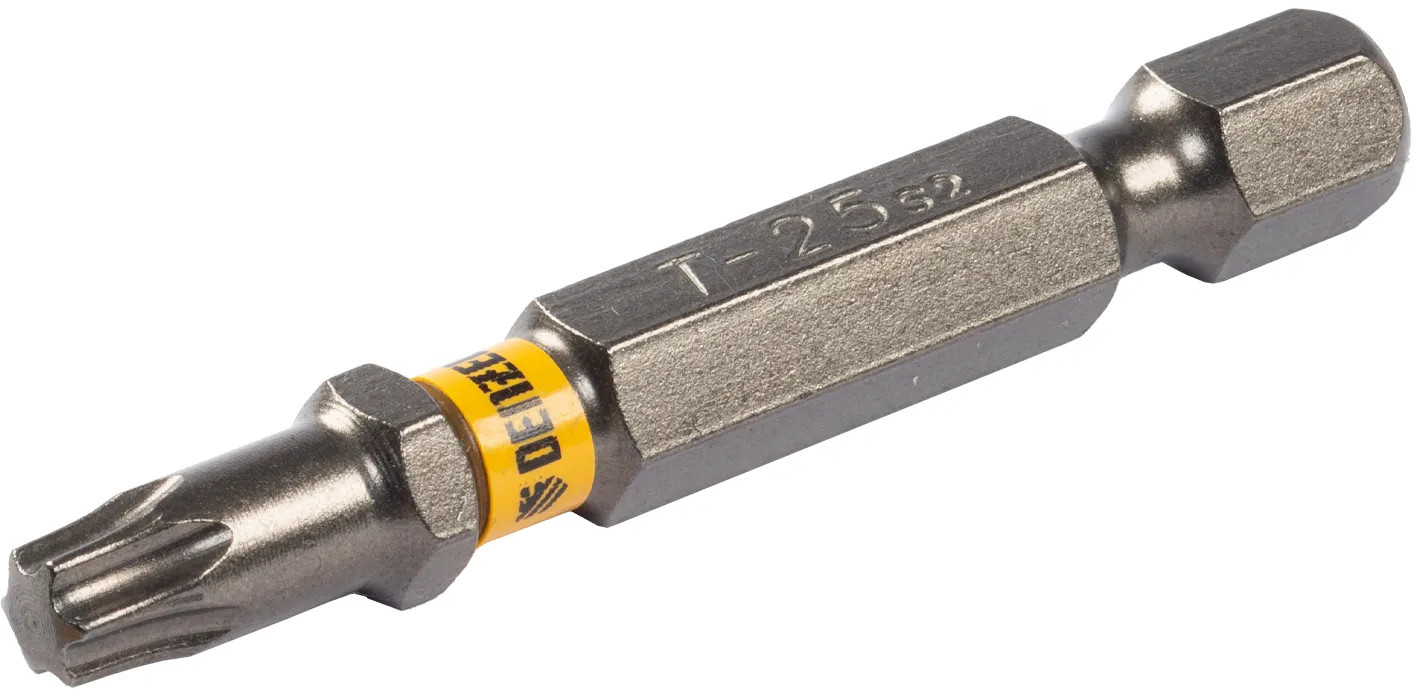 • каждая бита защищена от подделок — об этом свидетельствует цветное кольцо с логотипом ТМ Denzel;