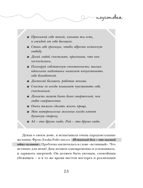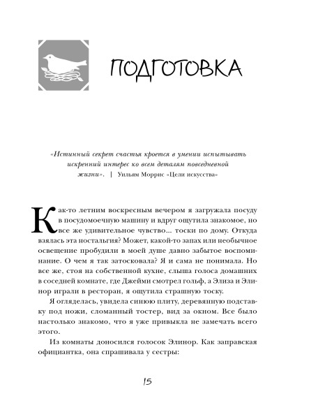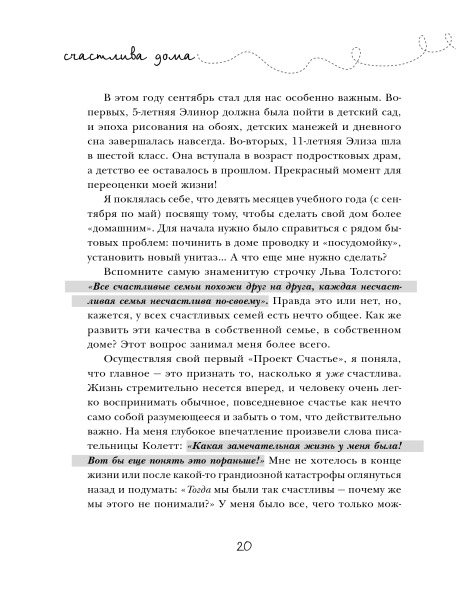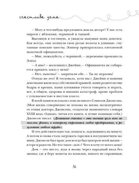 И мне книга очень понравилась. Я для себя нашла очень много полезной информации, нравится и стиль изложения, читается легко. Хочется меняться в лучшую сторону вместе с автором, книга не о досуге, а скорее о работе над собой, о самоконтроле в простых бытовых ситуациях. Женщина в семье как антенна, когда ей хорошо и она счастлива, то и всем возле нее хорошо и уютно. Книга о том, как найти счастье в стенах собственного дома, сидя у себя на кухне. Я бы посоветовала прочитать ее всем женщинам.