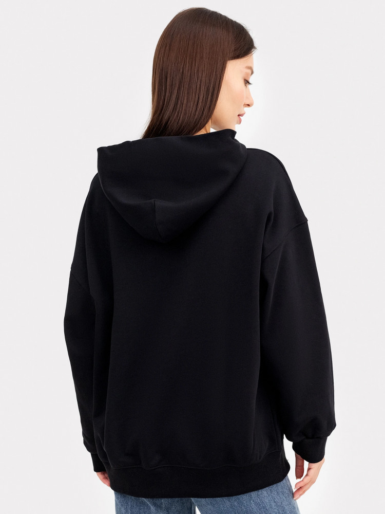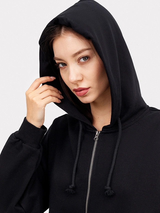 Качество отличное. 100% хб. Трехнитка. Очень удобная, комфортная. На свой 46/48,рост 160 этот размер отлично сидит. Капюшон объемный.