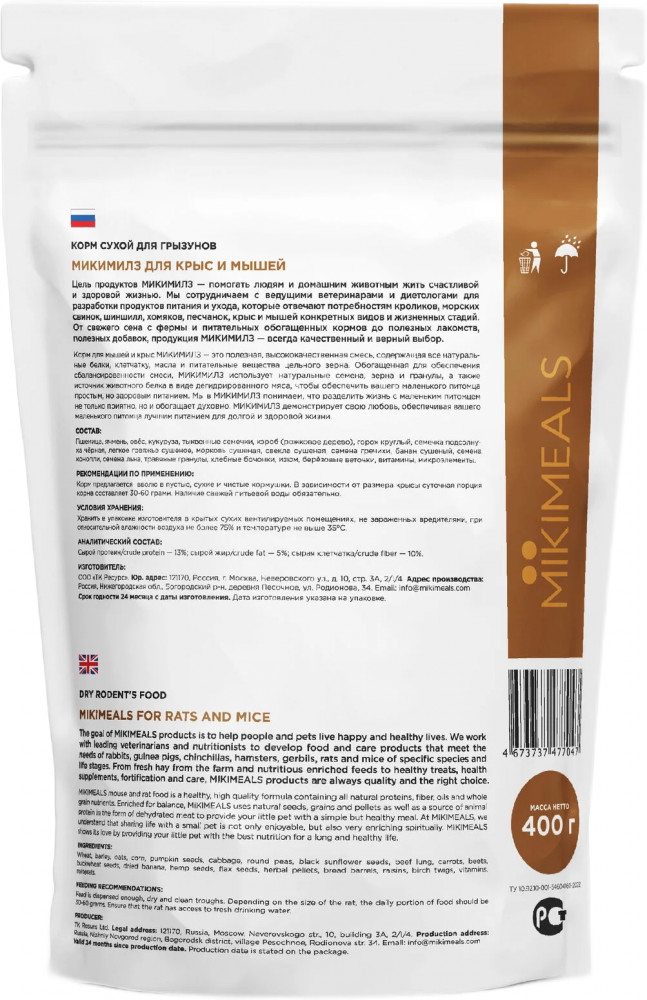 Корм для крыс и мышей — это полезная, высококачественная смесь, содержащая все натуральные белки, клетчатку, масла и питательные вещества цельного зерна.