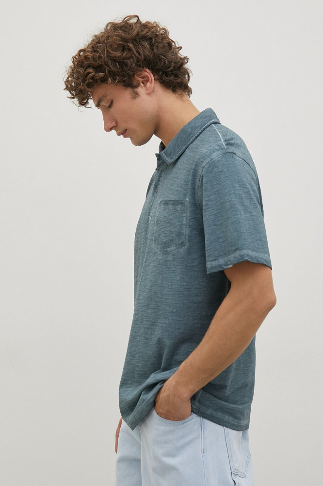 Долго искал "поло" с кармашком, очень большая редкость, они все в основном без карманов. Спасибо Флипу, нашел! Цвет на фото не тот, что на самом деле, освещение.... А реальный цвет темной морской волны. И вдоль швов как на джинсах-варенках немного посветлее. Футболкой доволен, размер в самый раз
