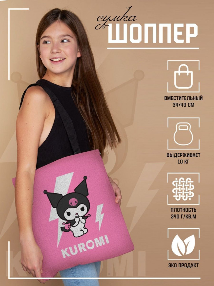 💳 Оплатить за товар можно при получении 🇰🇿 Есть бесплатная доставка по Казахстану от 1 дня 🎁 Копите бонусы с каждой покупки Серия: Kuromi Сумка шоппер — идеальное решение для повседневного использования, переводится с английского как хозяйственная сумка или сумка для покупок. Шоппер — это аксессуар, который подчеркивает стиль каждой модницы. Изготовлена сумка из из 100% хлопковой ткани, которая выдерживает значительные нагрузки. Имеет небольшой вес, легко складывается, удобно брать с собой. Достаточно прочные ручки не порвутся при больших нагрузках, а их длина позволит носить сумку как в руке, так и на плече. Сумка не на молнии. |