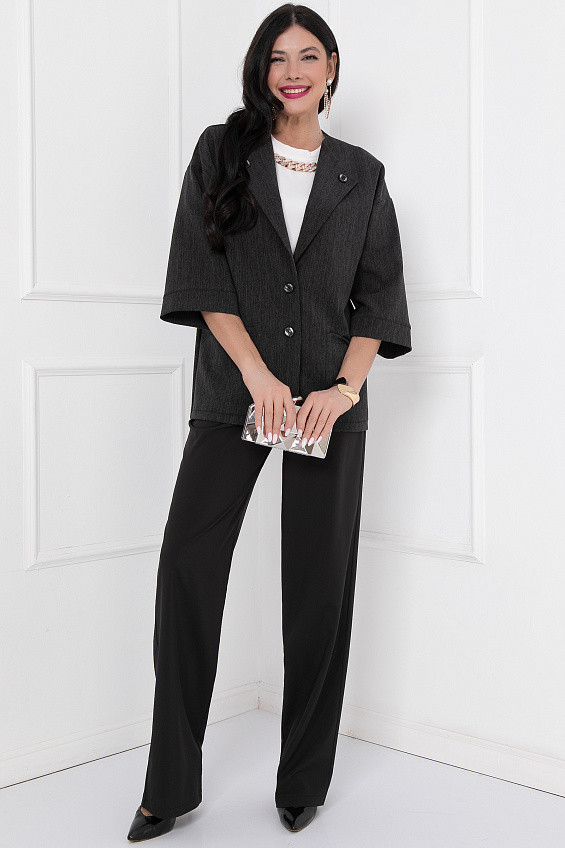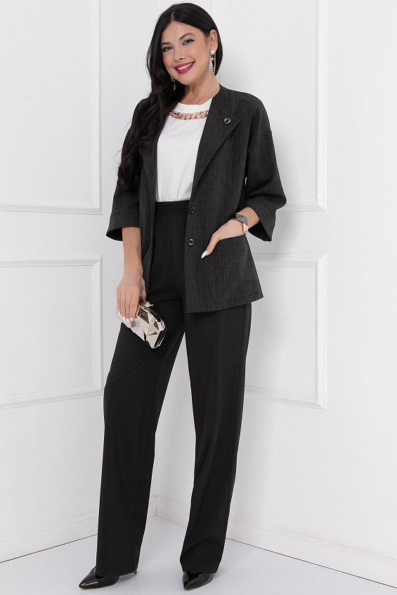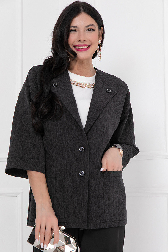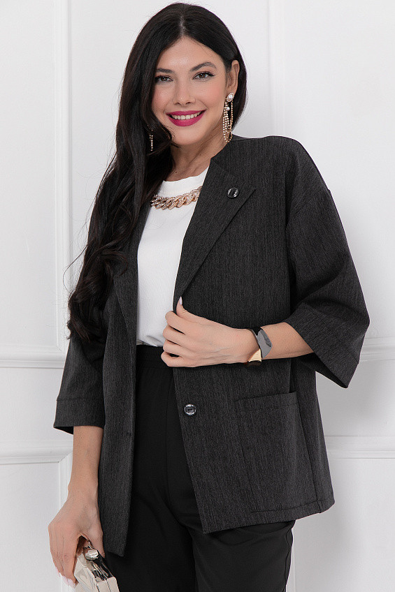 Замечательный жакет из плотной ткани. Как раз сейчас на теплую осень. 46 размер подошел идеально.