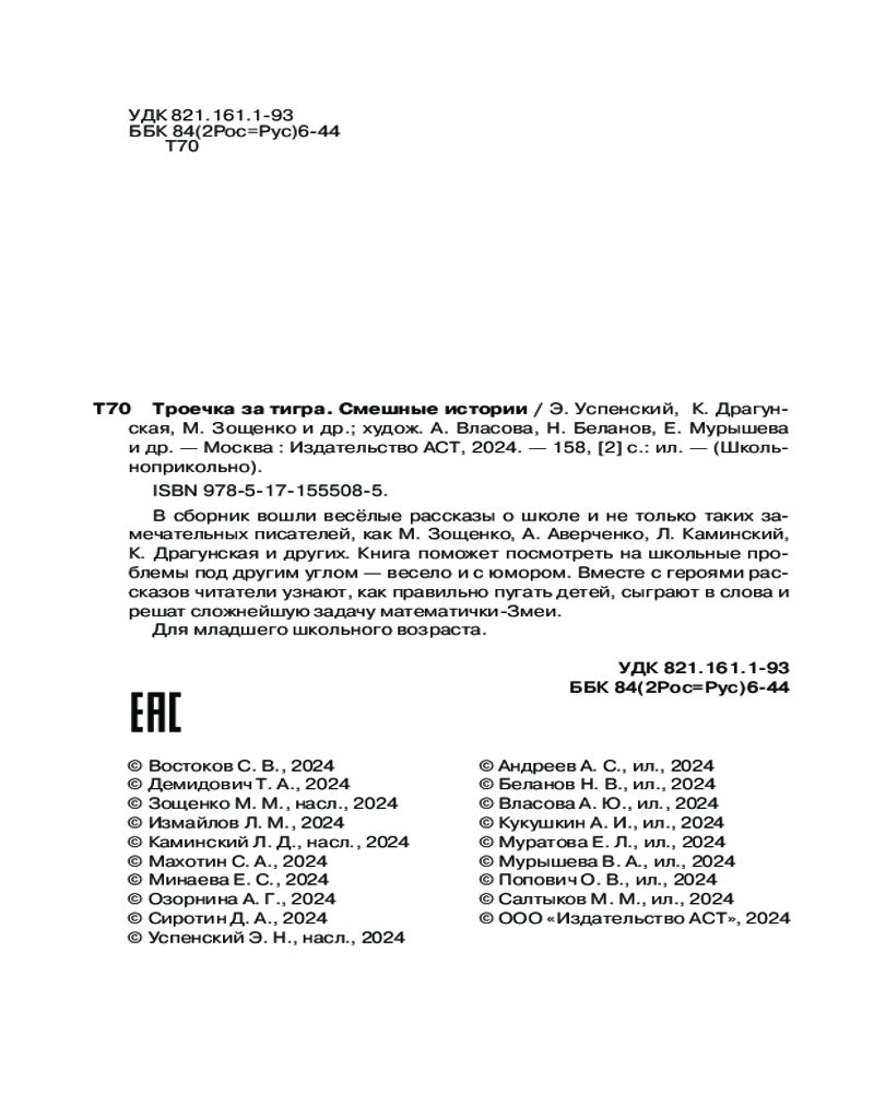 💳 Оплатить за товар можно при получении 🇰🇿 Есть бесплатная доставка по Казахстану 🎁 Копите бонусы с каждой покупки Серия: Школьноприкольно В сборник вошли весёлые рассказы о школе и не только таких замечательных писателей, как М. Зощенко, А. Аверченко, Л. Каминский, К. Драгунская и других. |
